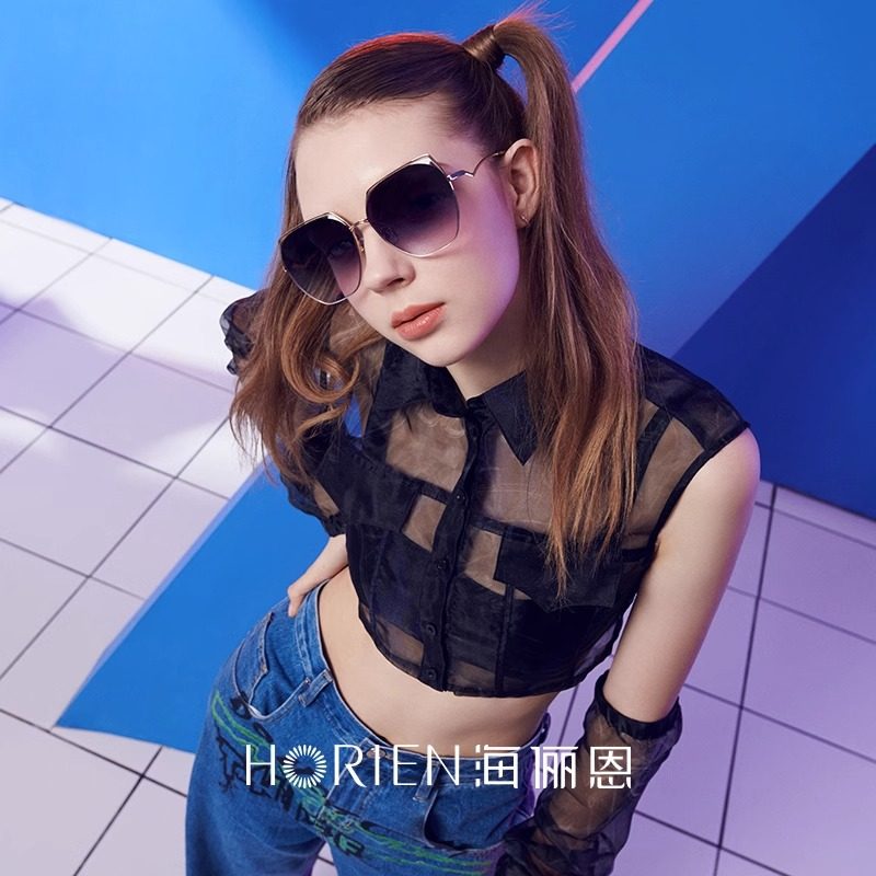 海俪恩墨镜女高级感ins渐变茶有色复古网红太阳眼镜新款潮男N6912
