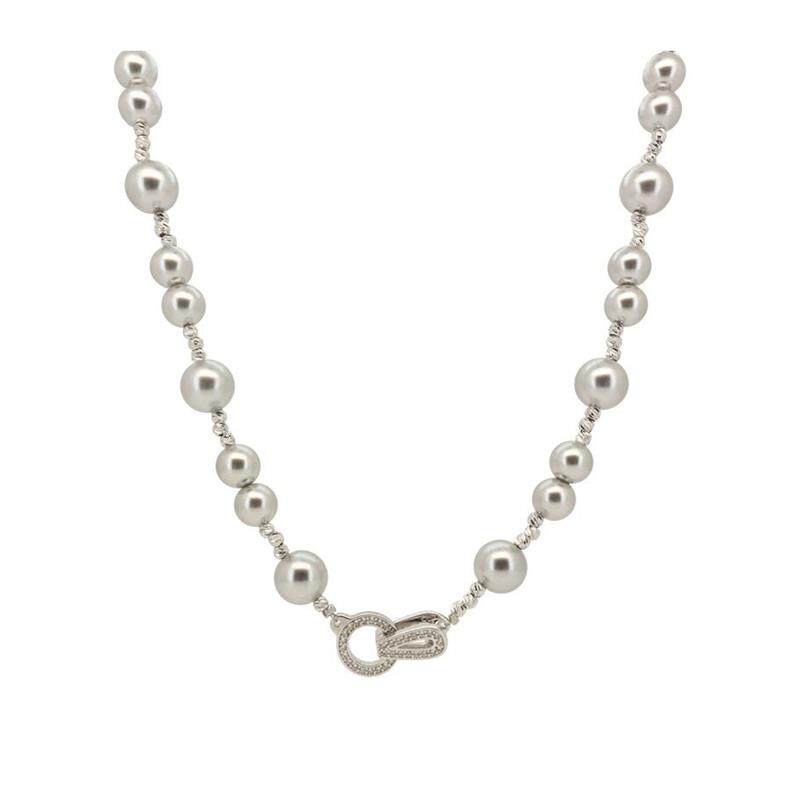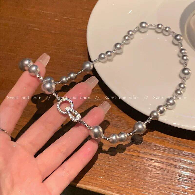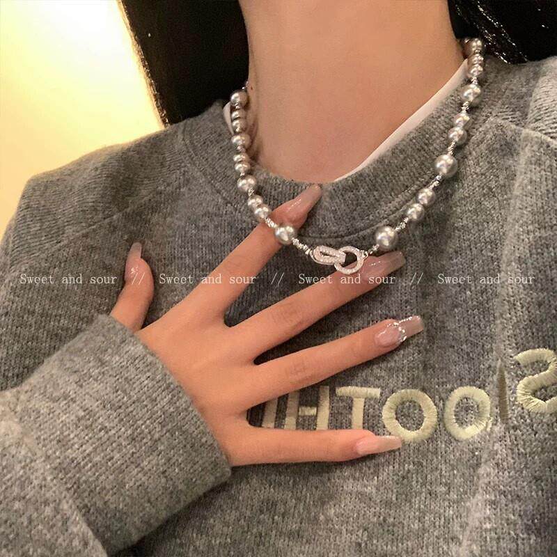 高级感灰色仿珍珠项链小众设计感高级气质锁骨链女夏甜酷百搭颈链