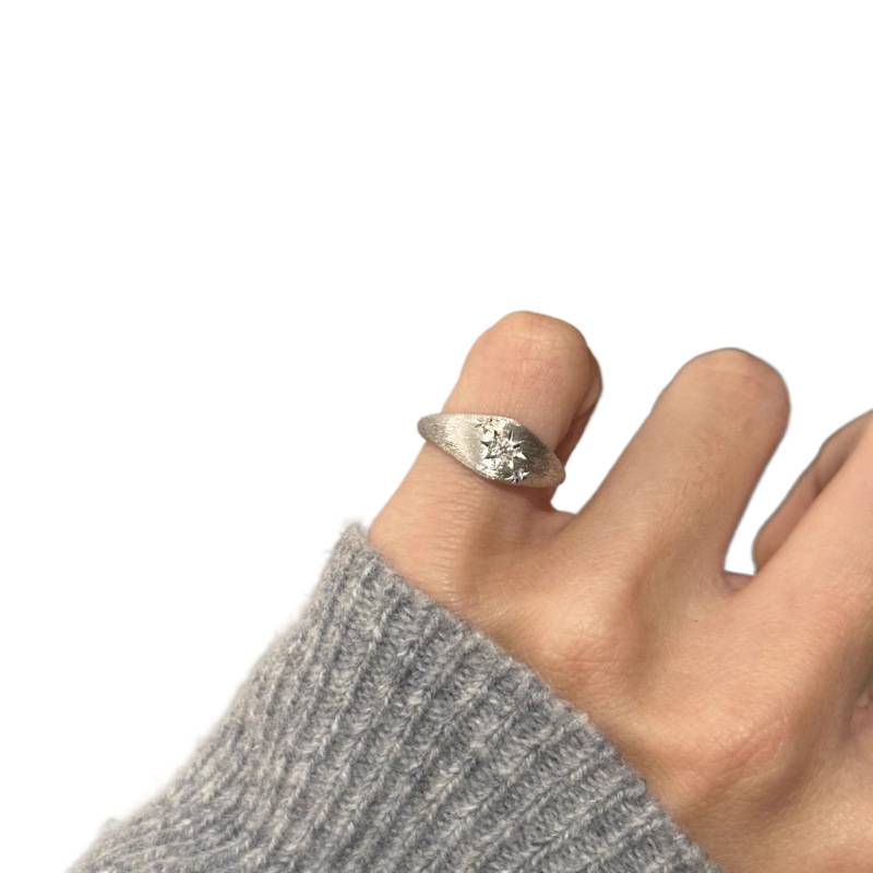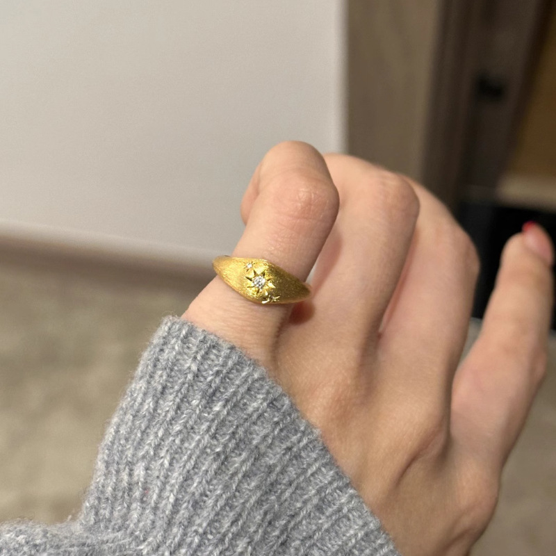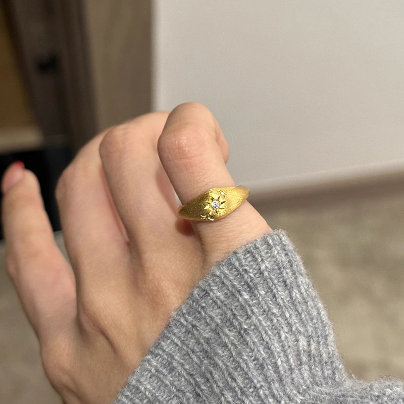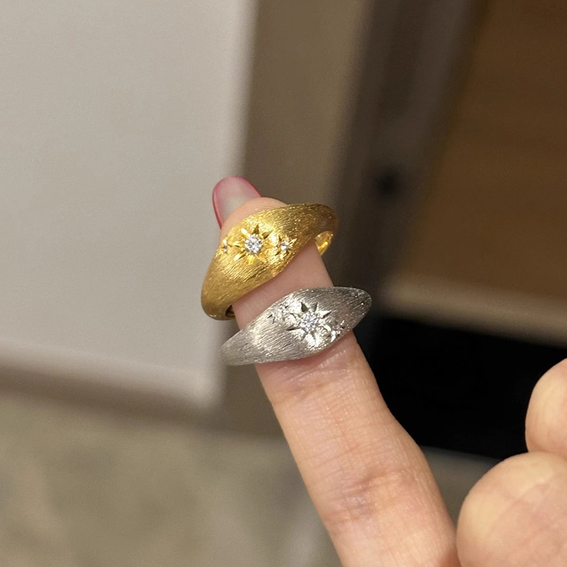 点钻拉丝星芒尾戒中古回流风小众轻奢高级感戒指环