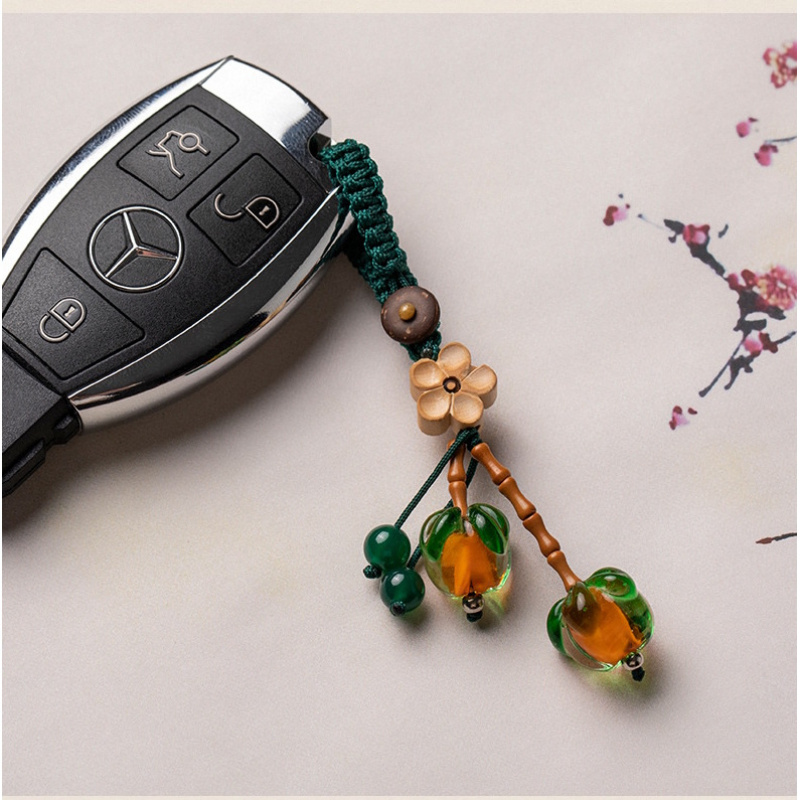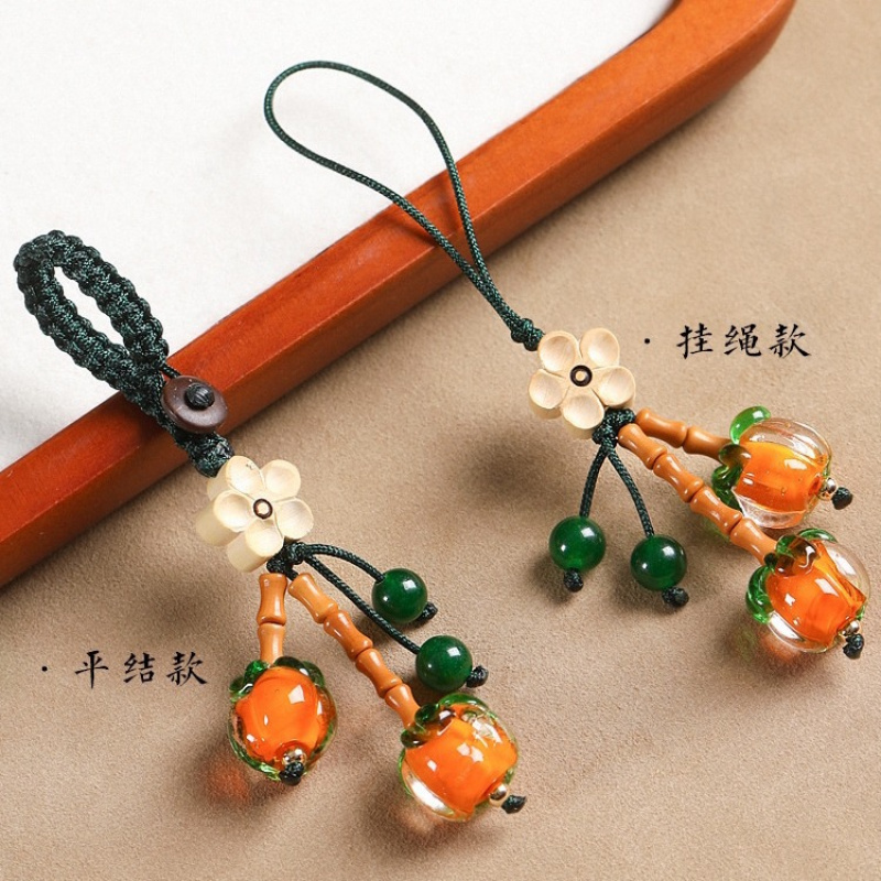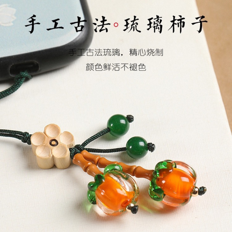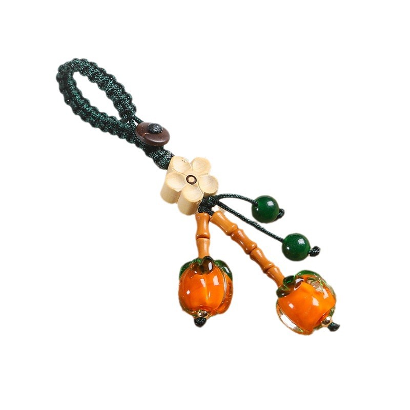柿柿如意汽车钥匙扣挂件琉璃柿子可爱精致男女士手机链挂饰小吊坠