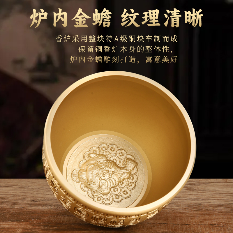 黄铜香炉家用上香供奉财神爷供佛室内线香插香薰炉百福缸聚宝盆