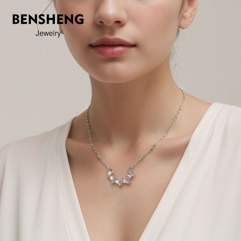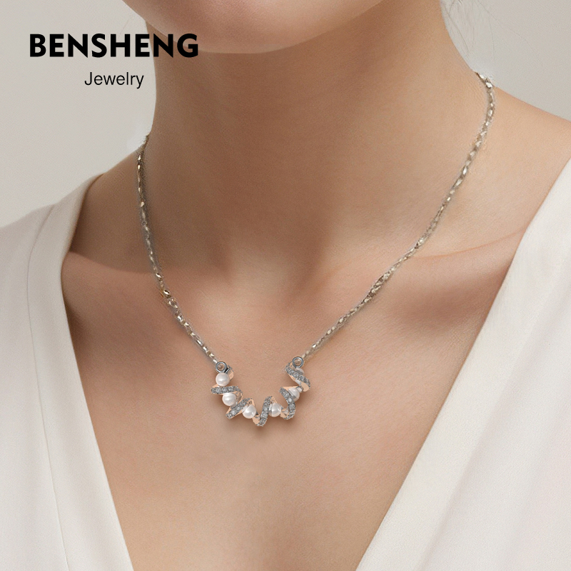 BENSHENG真爱旋转施家仿珍珠项链女夏锁骨链轻奢原创小众设计感