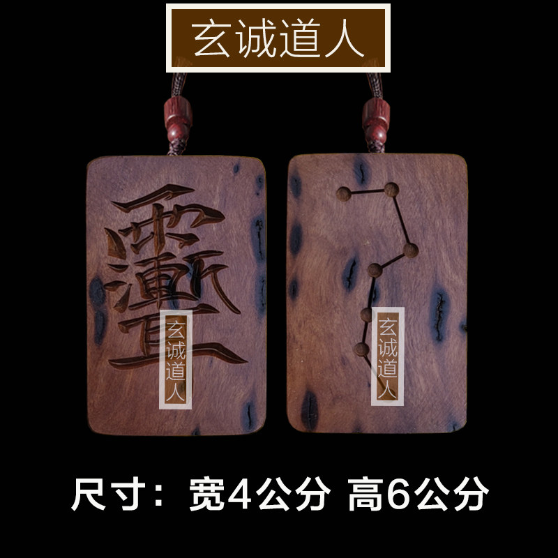 玄诚道人天然雷击枣木 北斗七星紫薇讳 吊坠平安无事牌 双面雕刻