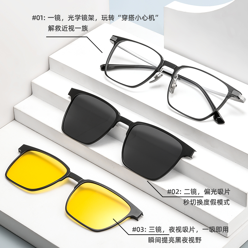 磁吸套镜眼镜近视男开车专用钓鱼偏光太阳镜夜视墨镜夹片日夜两用