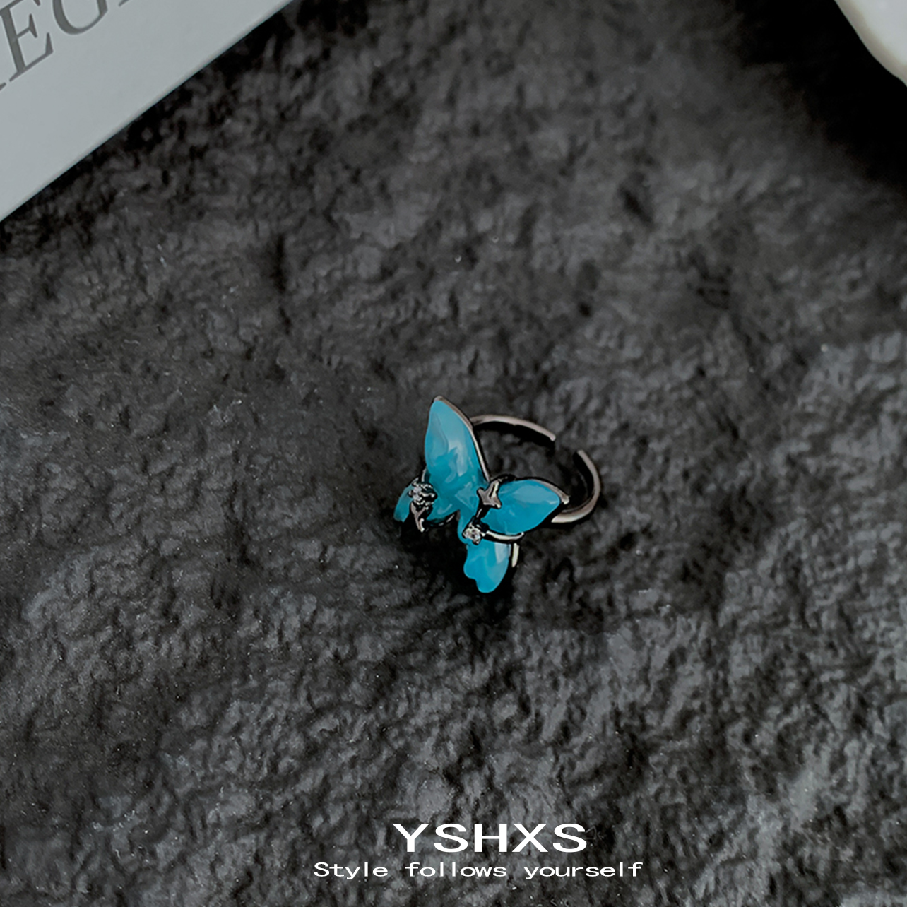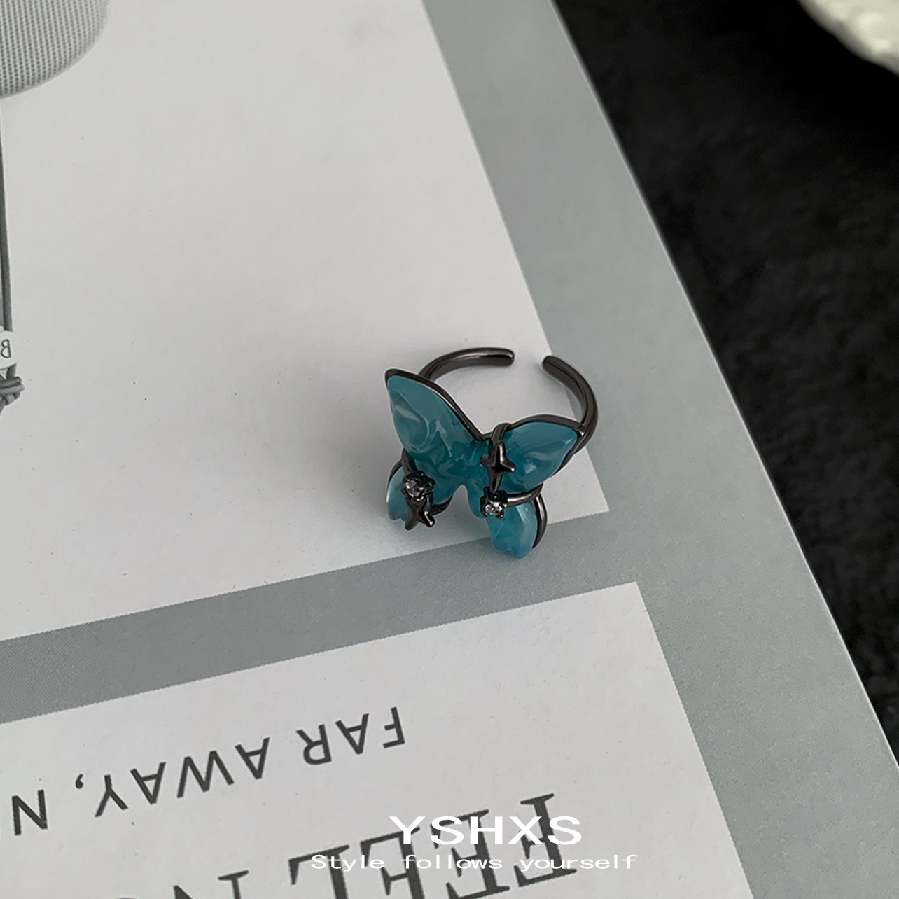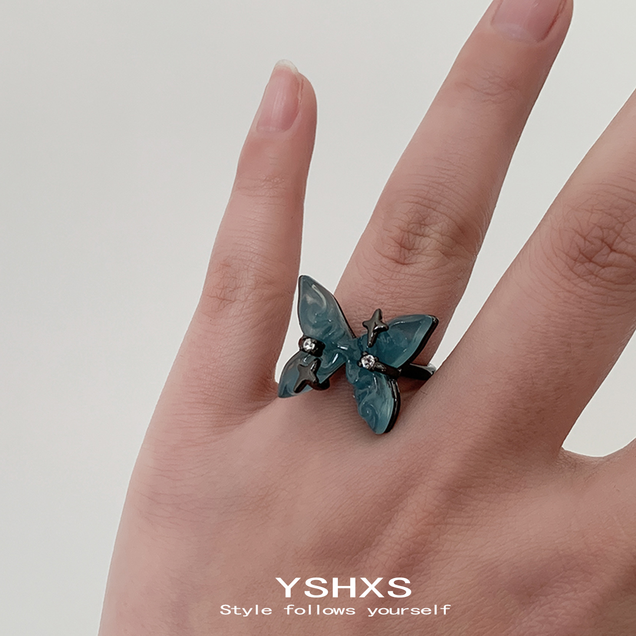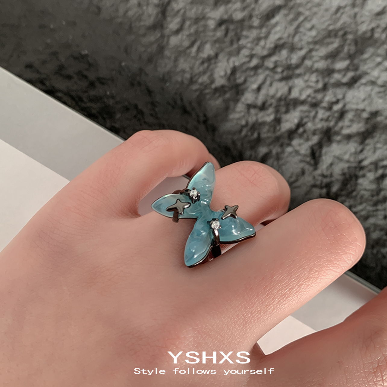 冰川蓝蝴蝶芒星戒指开口可调节小众设计感冷淡风独特个性朋克指环