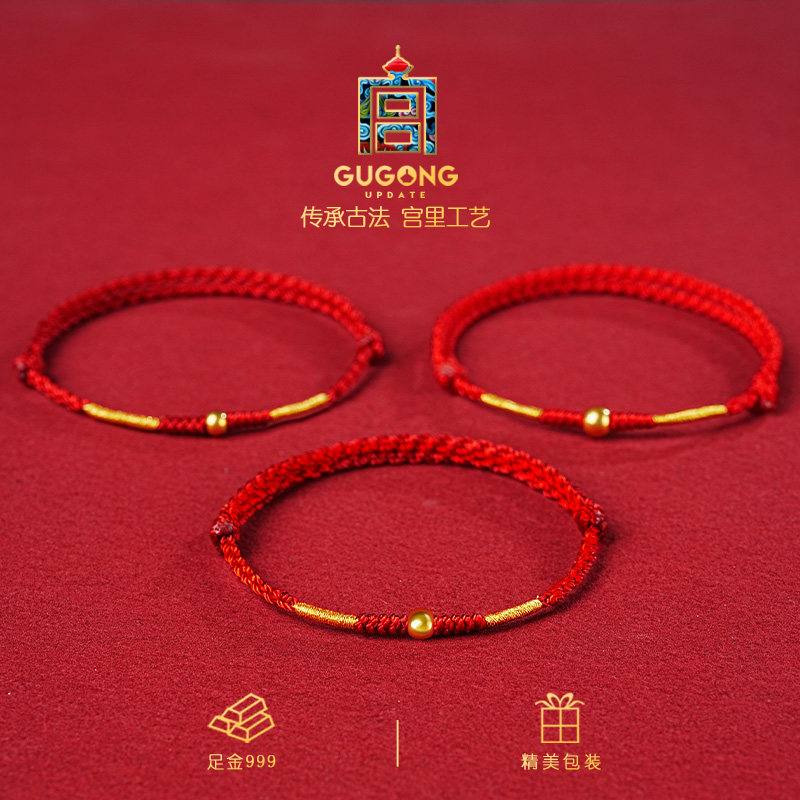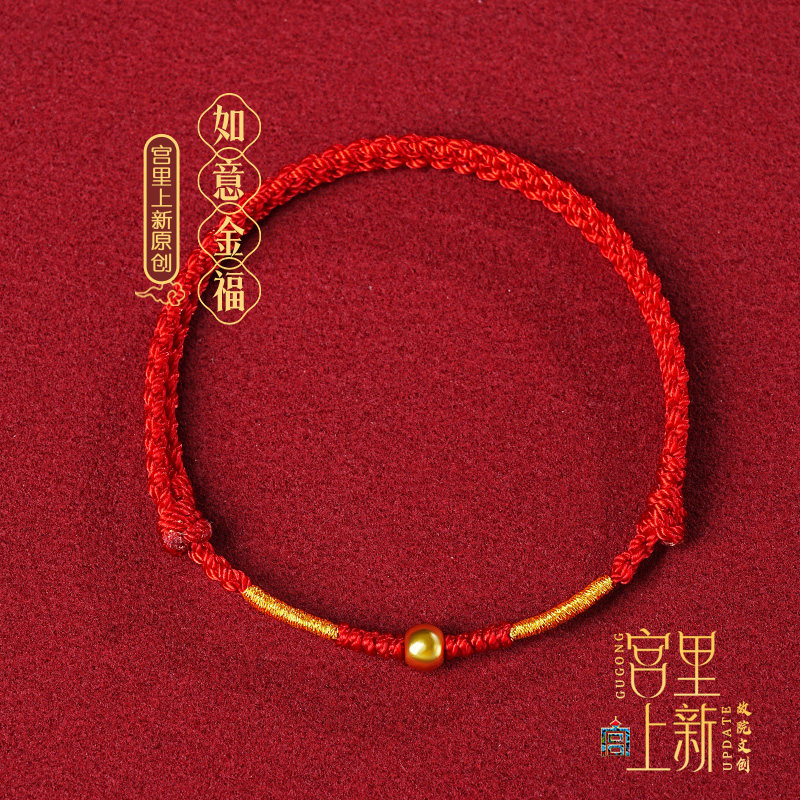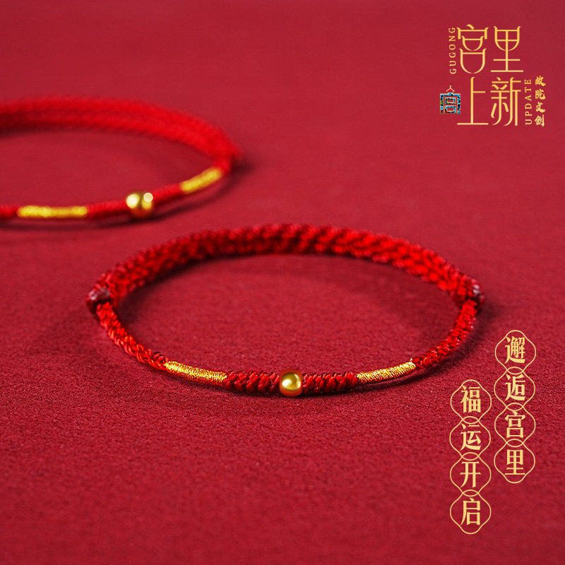 宫里上新红绳黄金手链女款足金珠红色手绳编马年本命年生日礼物