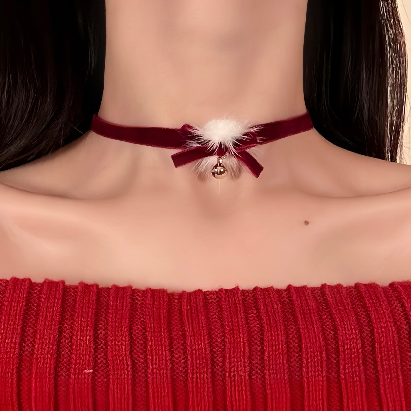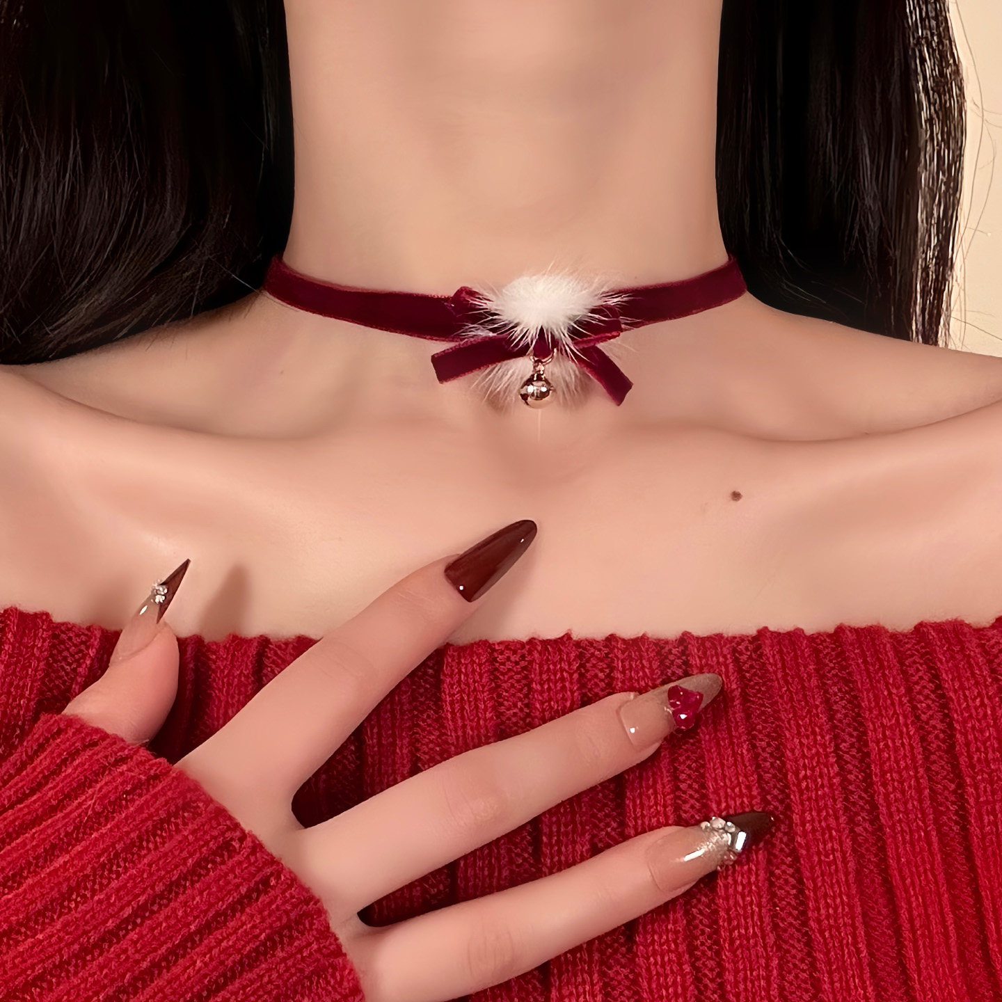 HEY TAO圣诞限定红色丝绒蝴蝶结choker项链秋冬纯欲气质颈链配饰