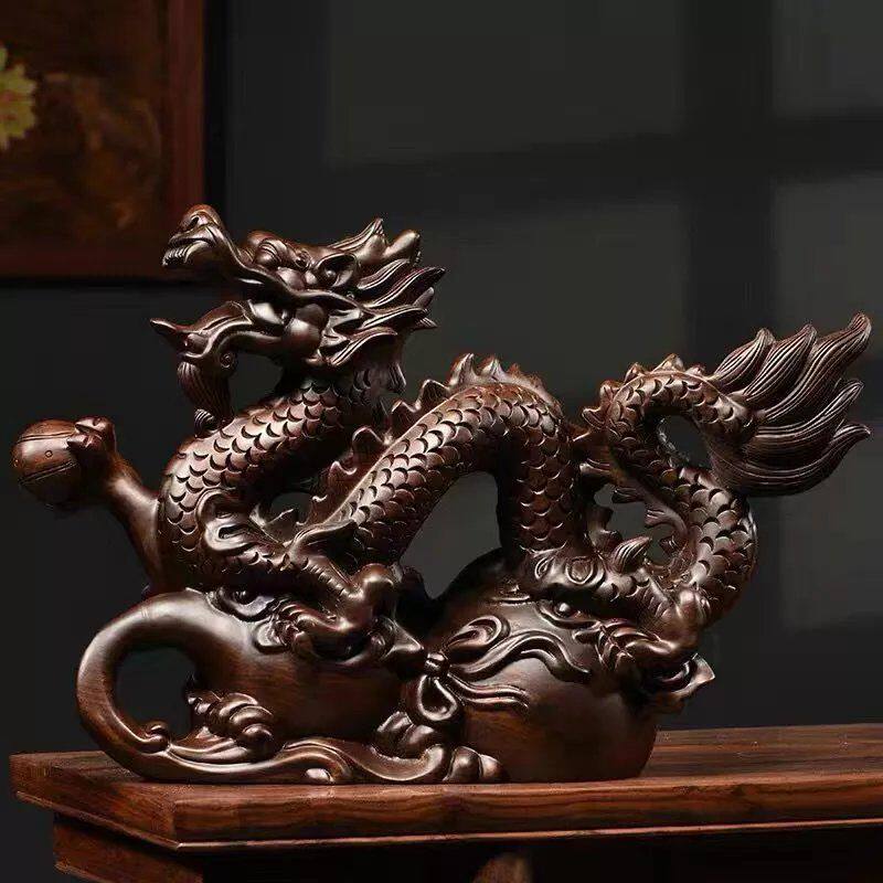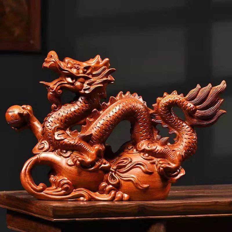 绿色木质龙摆件实木十二生肖龙摆设家居客厅办公室装饰工艺品送礼