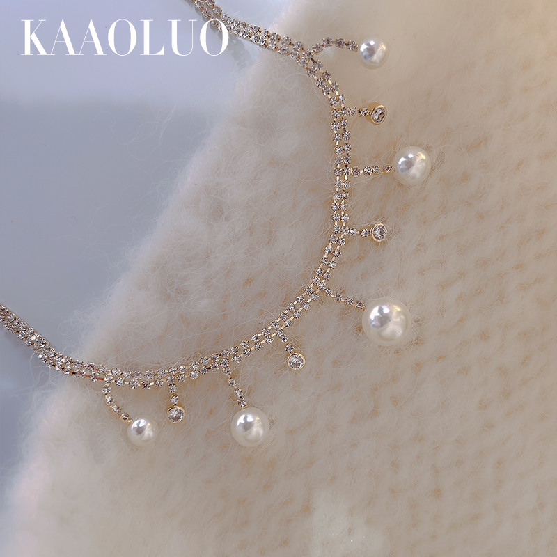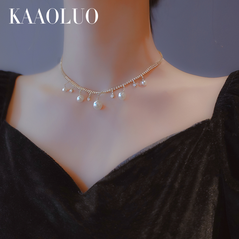 项链女复古锁骨链合成珍珠毛衣链奢华颈链小香风新娘配饰晚宴吊坠