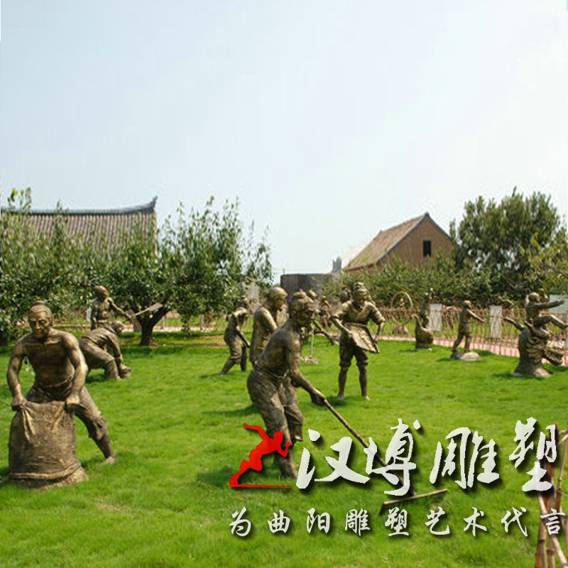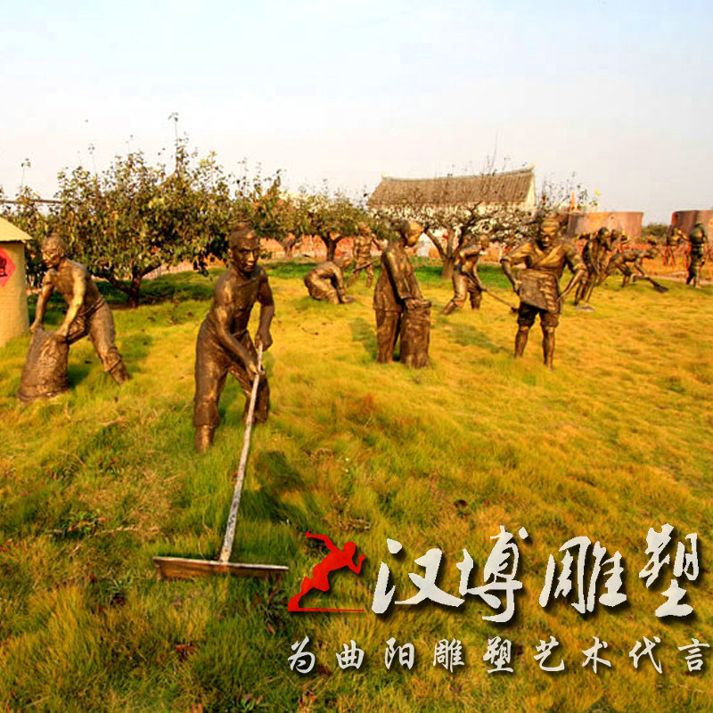 玻璃钢仿铜人物雕塑景观园林铸铜踩水车场景雕塑铜雕人物可定制做