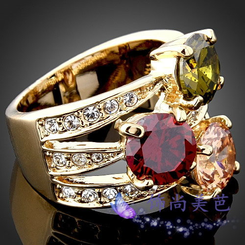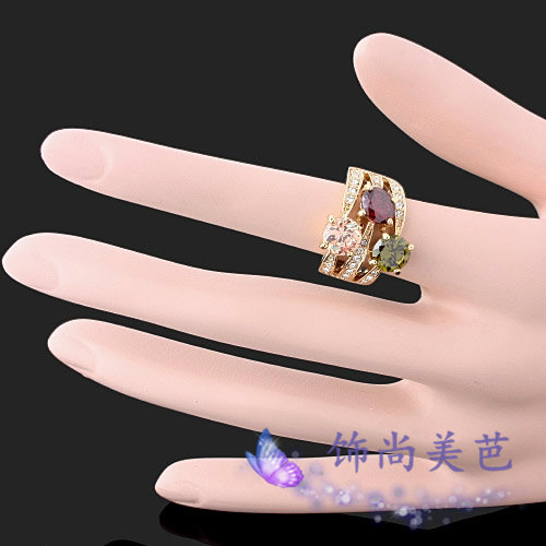 彩色锆石镀金食指戒时尚个性宽戒指女生日韩潮人满钻尾戒简约指环