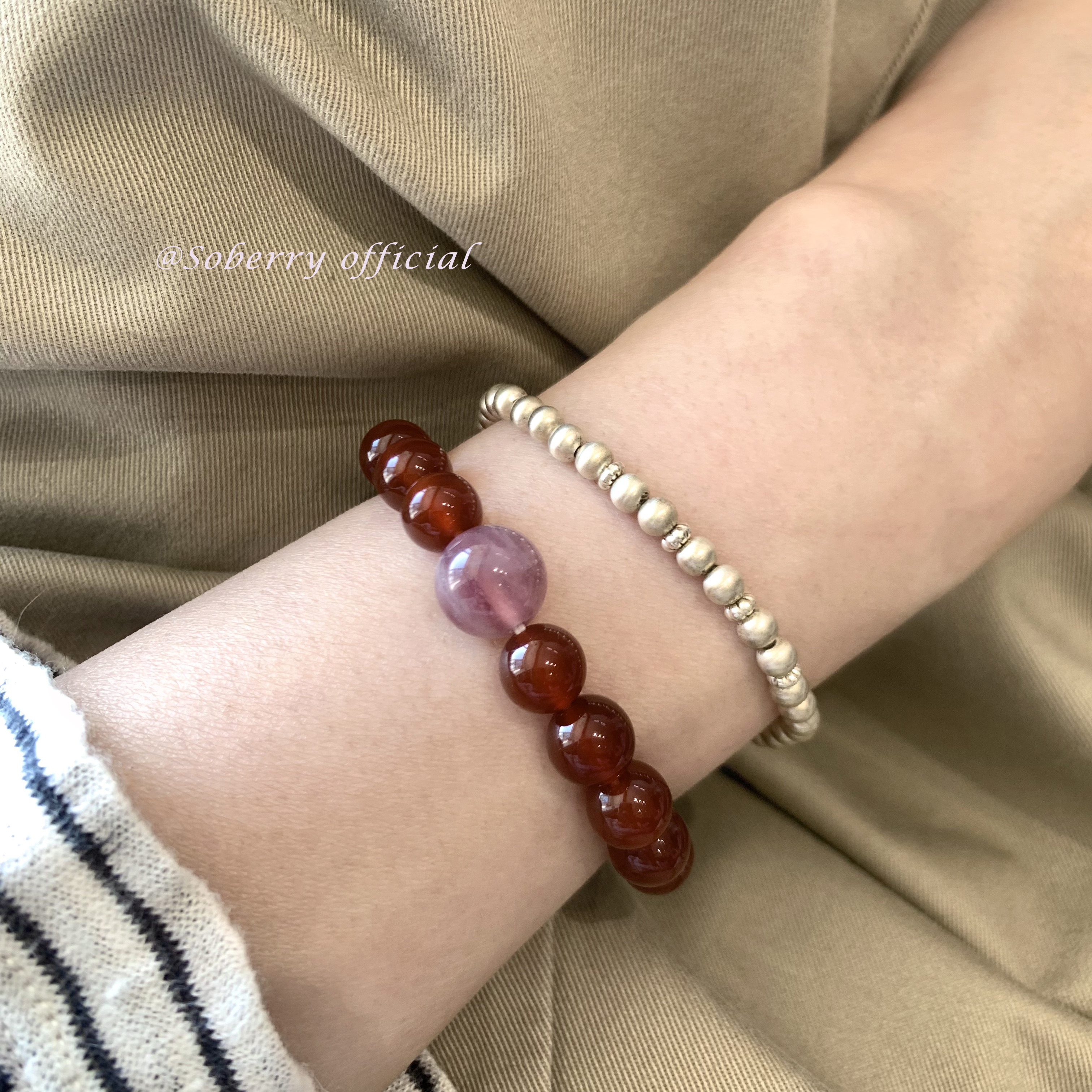 Soberry「好运接福」 转运珠紫马粉天然石串珠手链红玛瑙手串