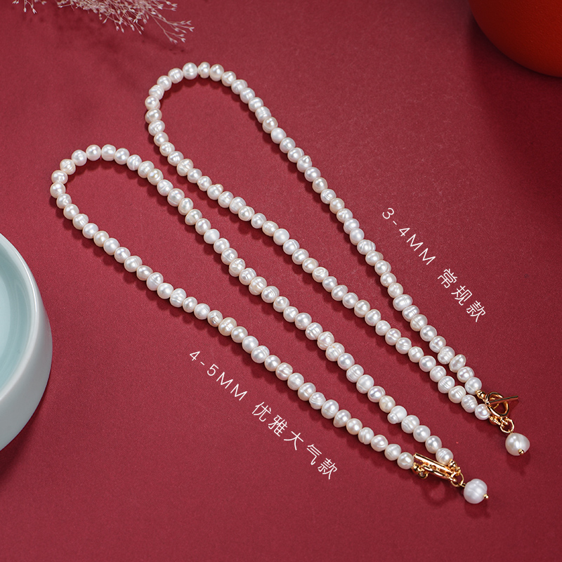 三种戴法!天鹅颈法式罕见极细迷你天然珍珠925纯银项链锁骨链OT扣