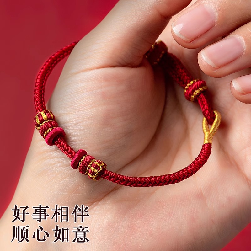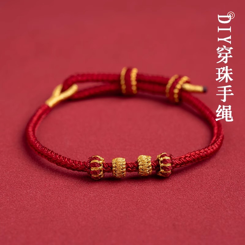 手工编半成品可穿珠黄金DIY红绳手链女男编织本命年好运招财手绳