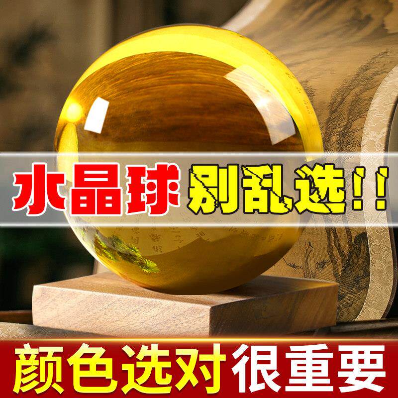 黄水晶球开 业摆件绿紫蓝粉色红色白透明玻璃球家居客厅商铺摆件