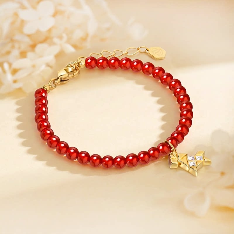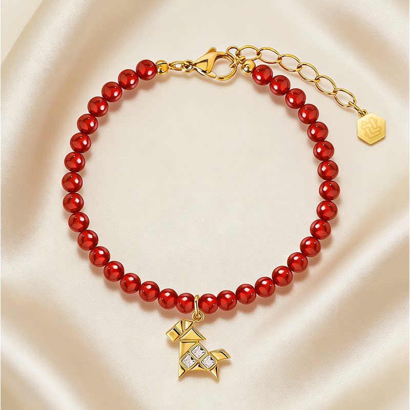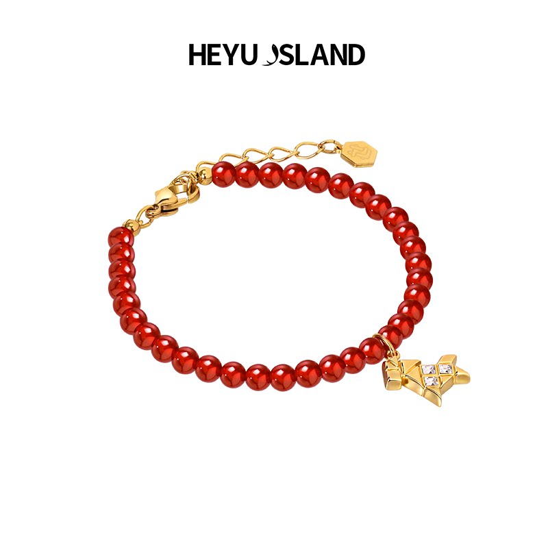 HEYU ISLAND/黑鱼岛女生闺蜜马年本命折纸小马红玛瑙红色串珠手链