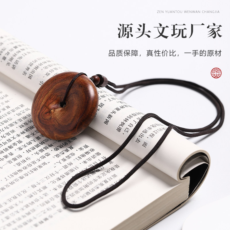 南山文创正宗海南黄花梨平安扣吊坠项链男女款复古风木质红木实木