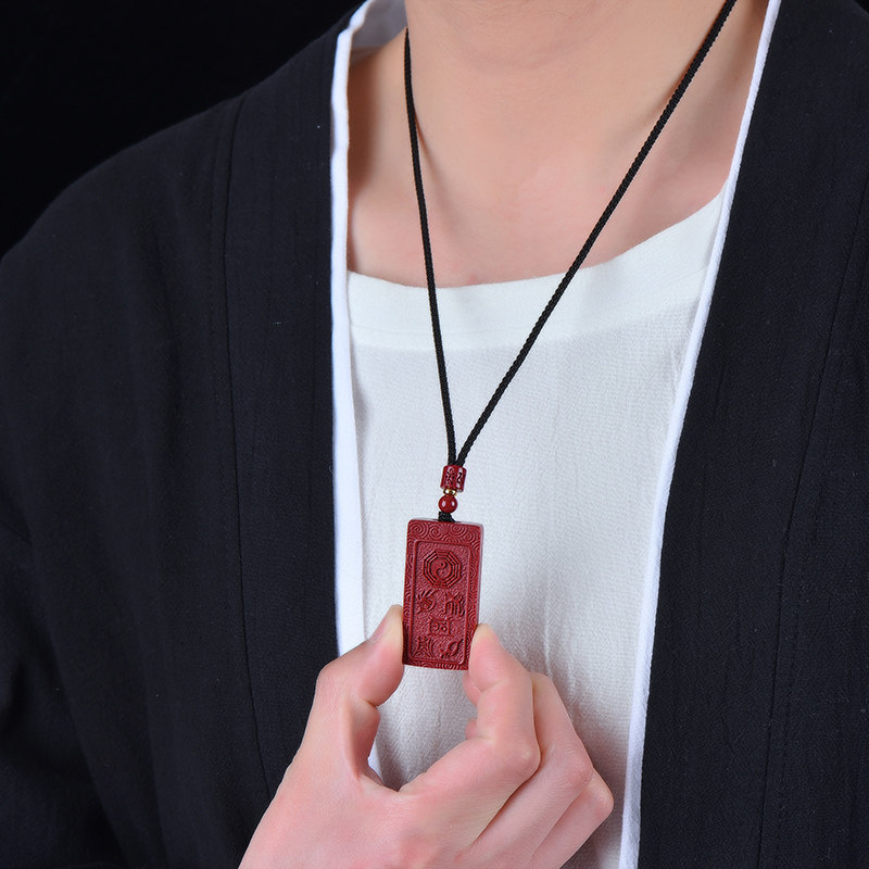 极速天然真品朱砂五岳真形图吊坠护身符J挂件钥匙扣男女款项链饰