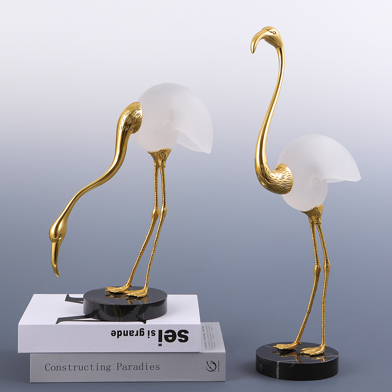 轻奢现代黄铜火烈鸟客厅玄关仙鹤摆件样板房间电视柜家居软装饰品