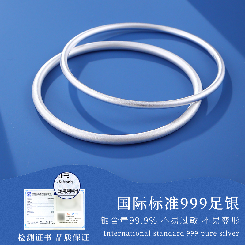 老银匠s999足银手镯三生三世银手镯纯银封口式古法女士多圈细银镯