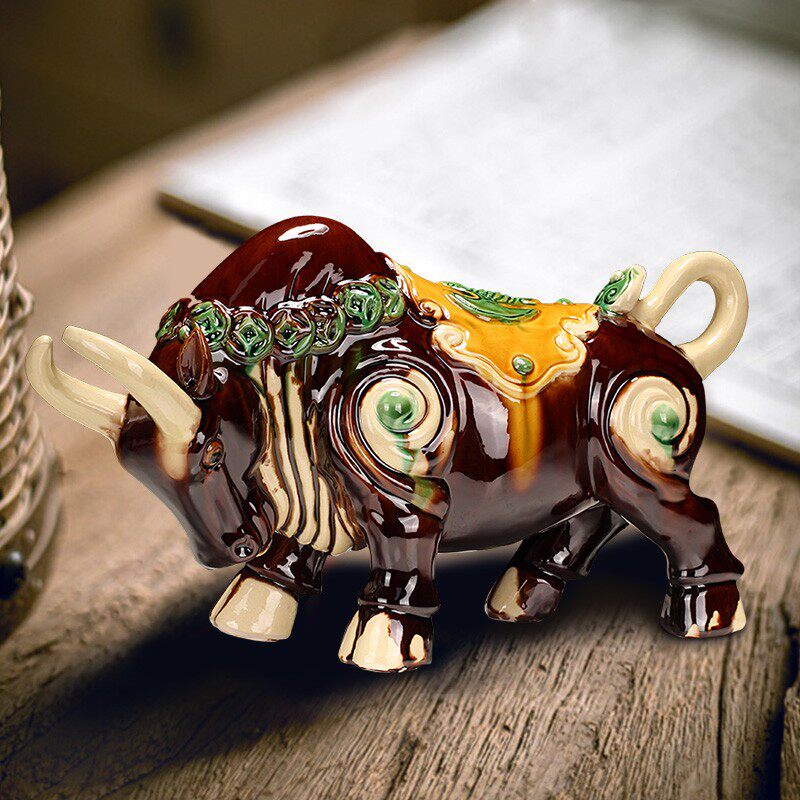 博艺萱陶瓷牛创意装饰品扭转乾坤办公室招财客厅家居饰品