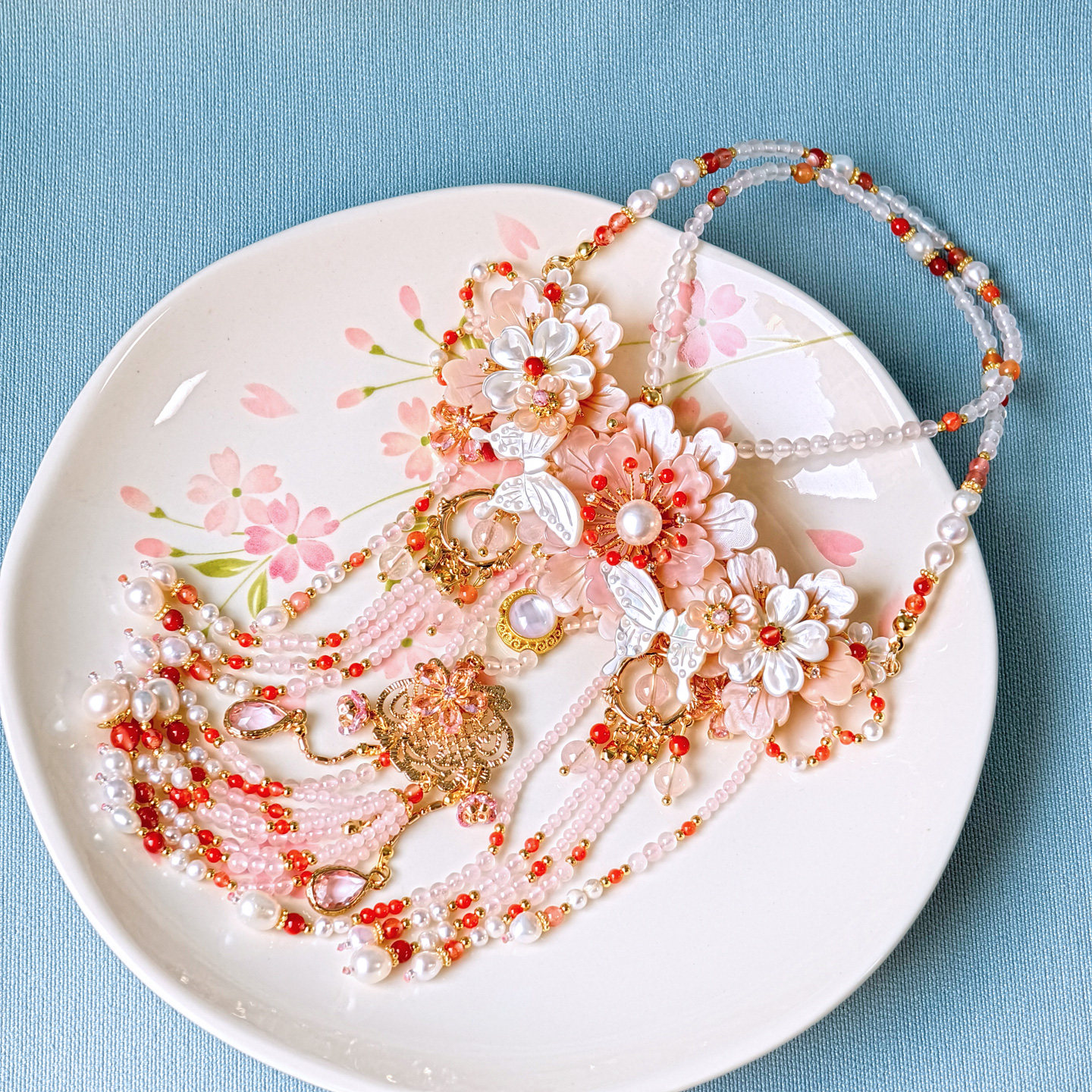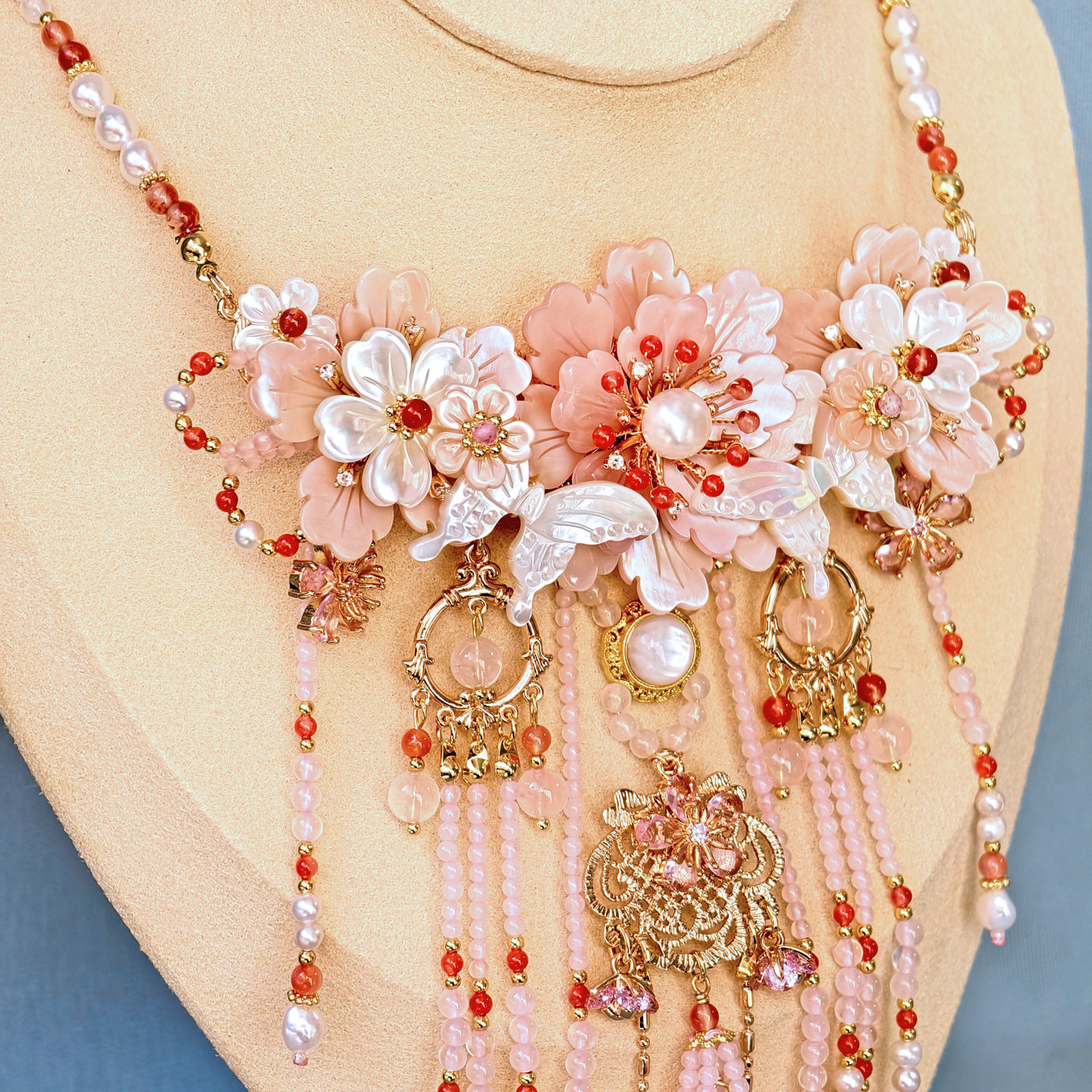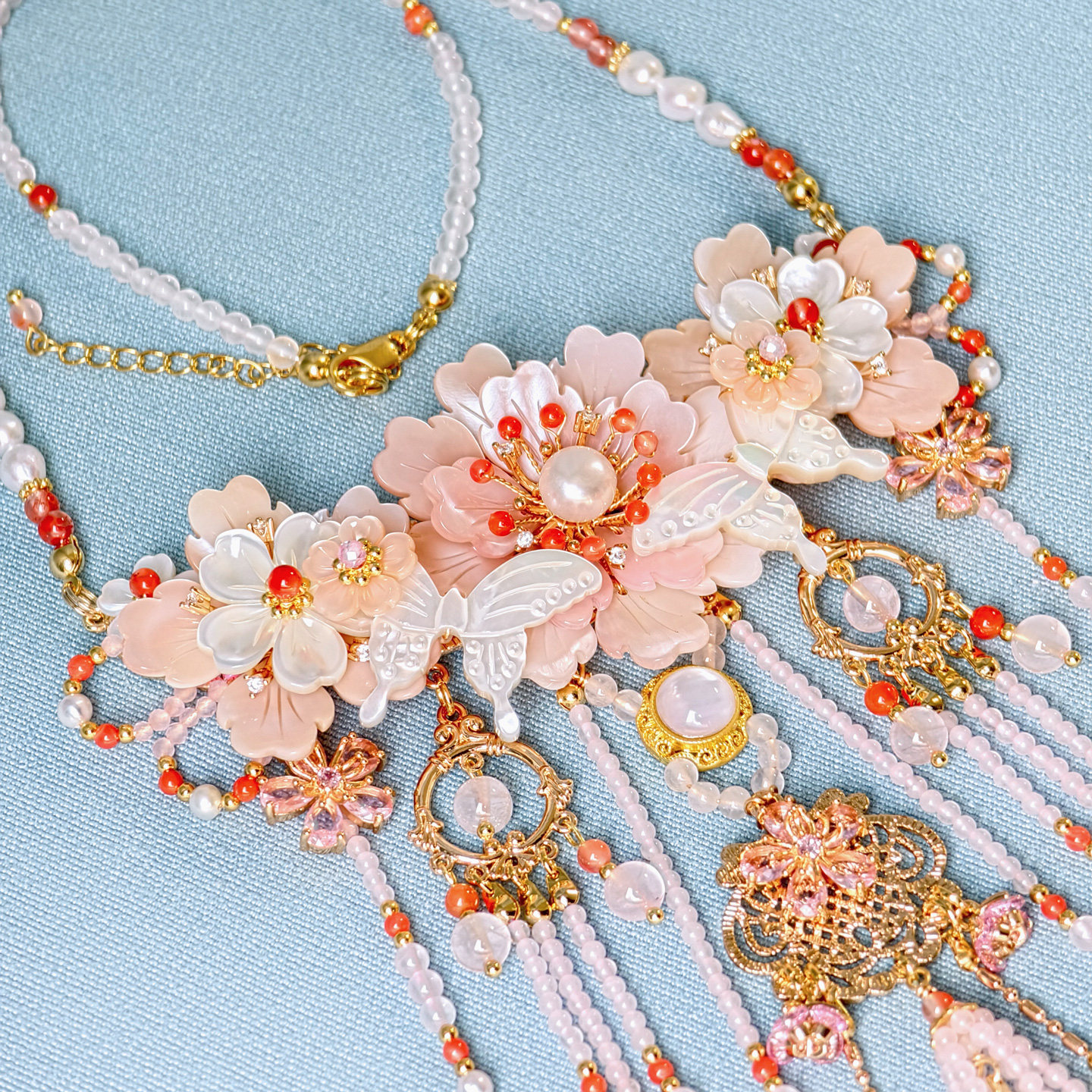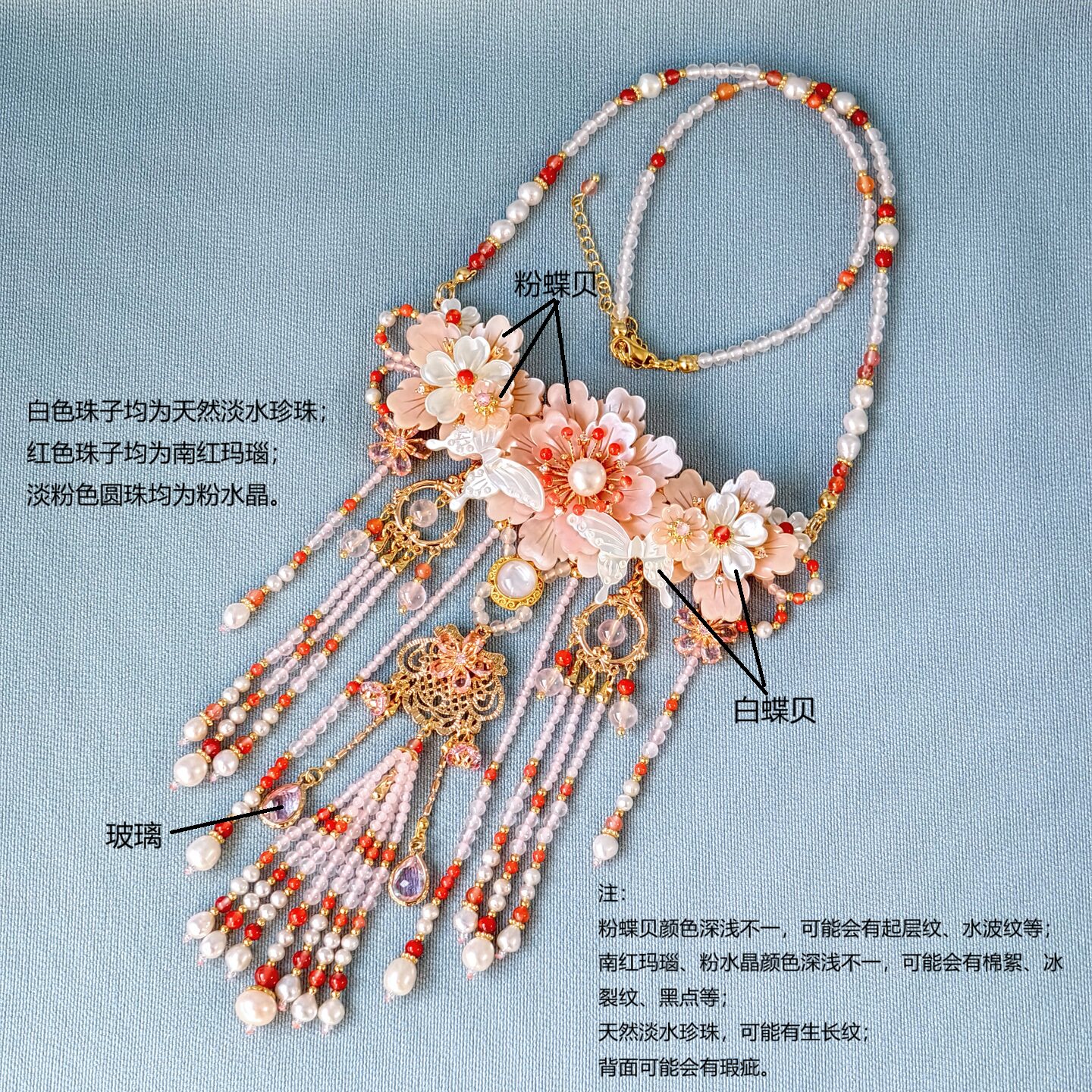 墨涧花原创设计粉蝶贝珍珠璎珞项链古风新中式汉服配饰