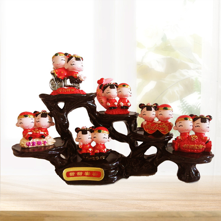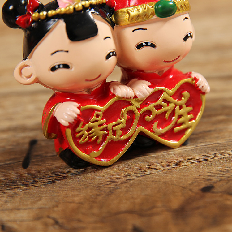中式婚庆娃娃套装树脂小木桩工艺品情侣七夕礼品家居婚房布置摆件