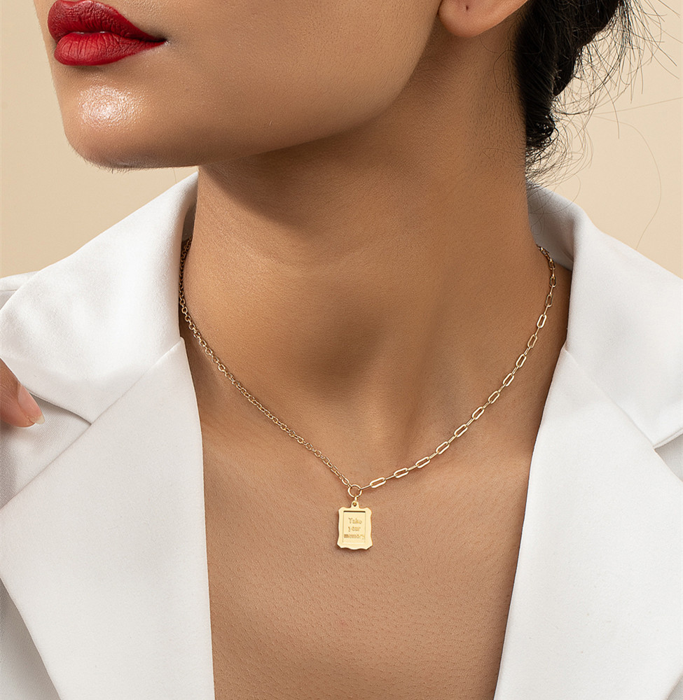 项链新款2024爆款原创手作设计感镂空方块字母时尚简约小众锁骨链