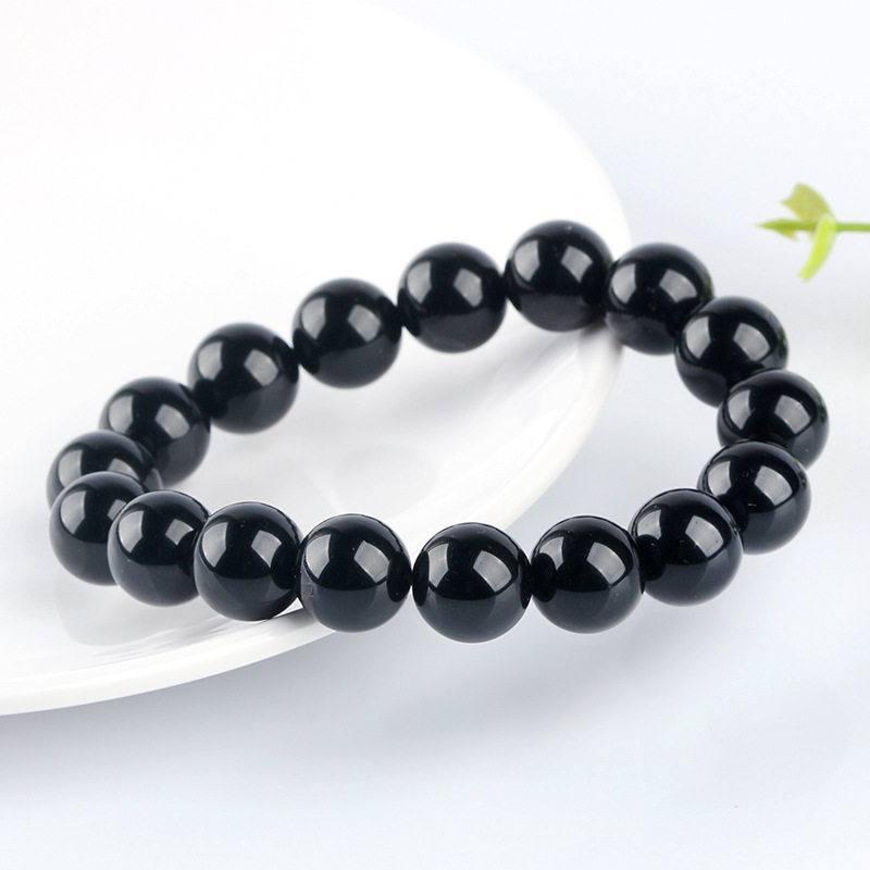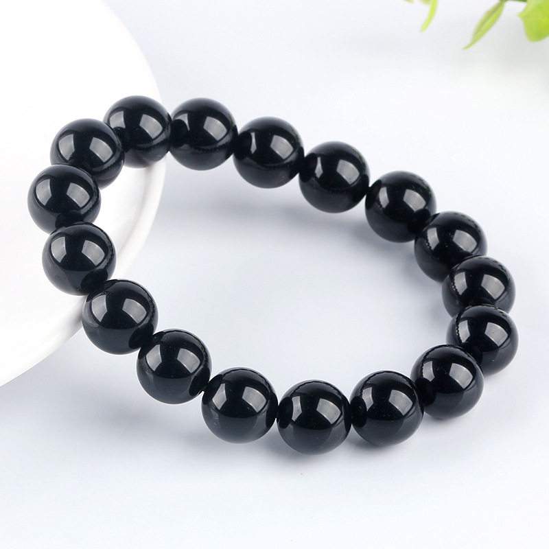 天然乌金黑曜石手链手串男女款黑色珠子本命年招财转运单圈手串