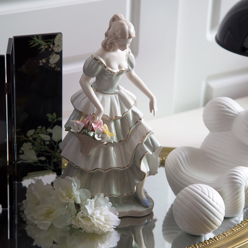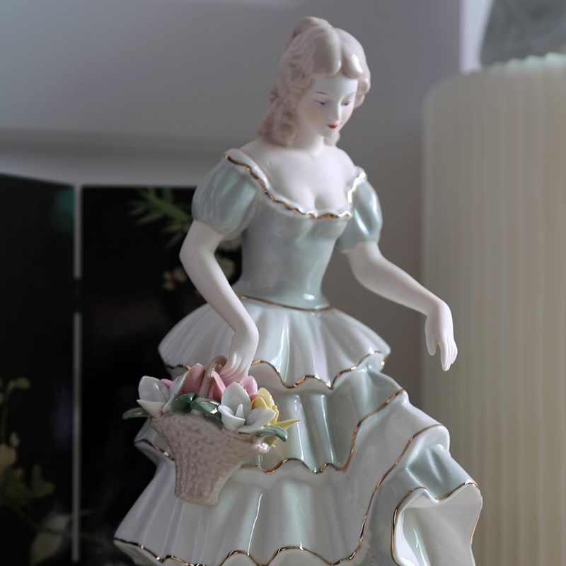 中古瓷偶提裙女孩高级感法u式公主桌面小屏风氛围感装饰陶瓷蓝摆