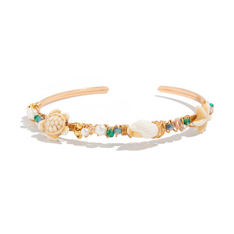 仿珍珠水a晶乌龟海螺海星开口臂镯女2025新潮时尚个性网红旅拍饰