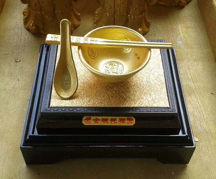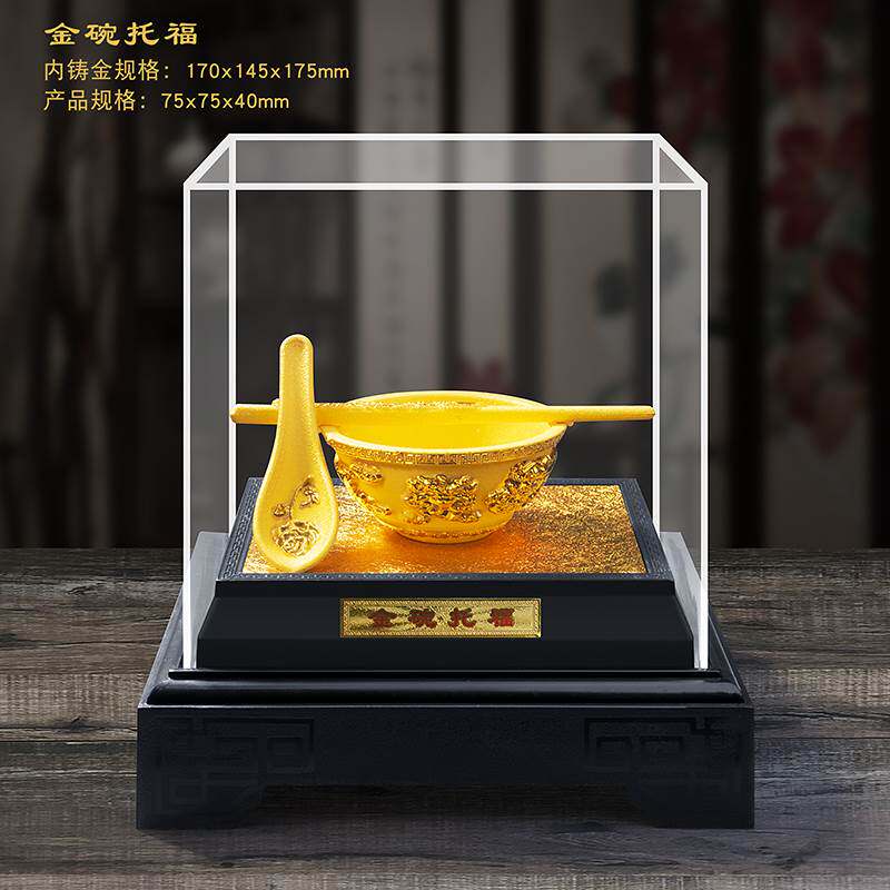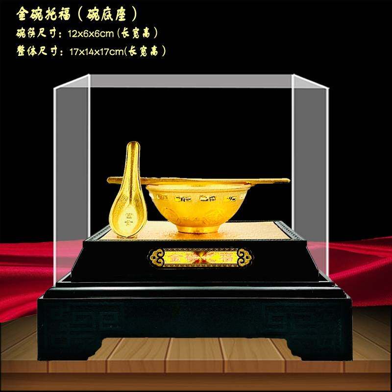 金碗托福绒沙金摆件 金碗筷 工艺品 富贵金饭碗结婚婚庆礼品