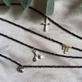 慵懒迷人气质 重工串珠黑尖晶编织蕾丝choker14k包金锁骨链choker