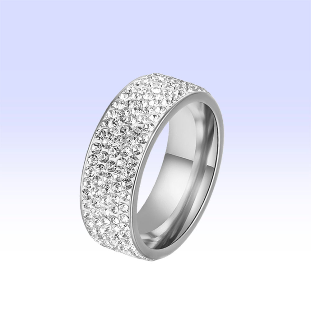 欧美满天星满钻身戒指ins潮嘻哈风5排平面钛钢不掉色戒指钛钢男女
