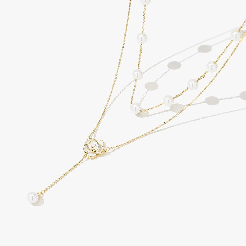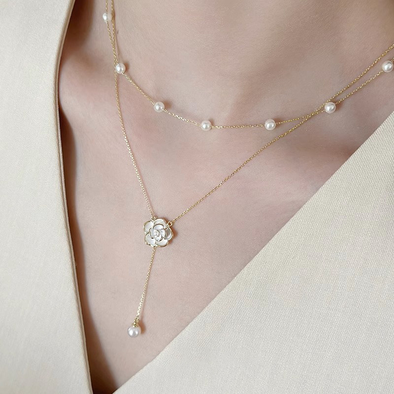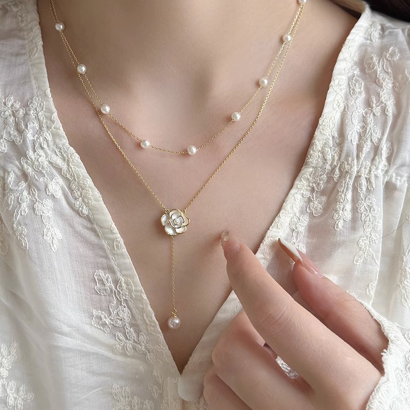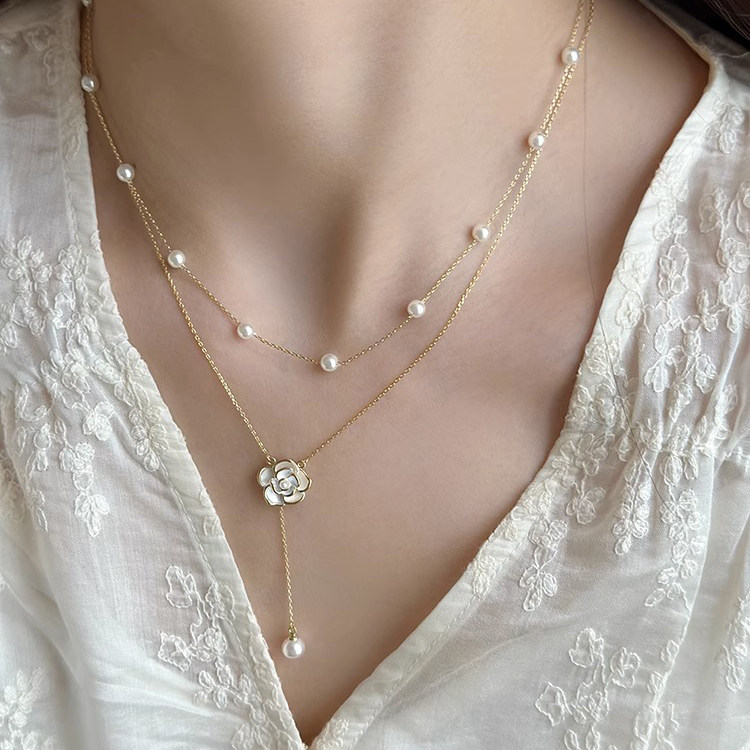 双层叠戴山茶花珍珠项链女小众设计高级颈链2025年新款爆款锁骨链
