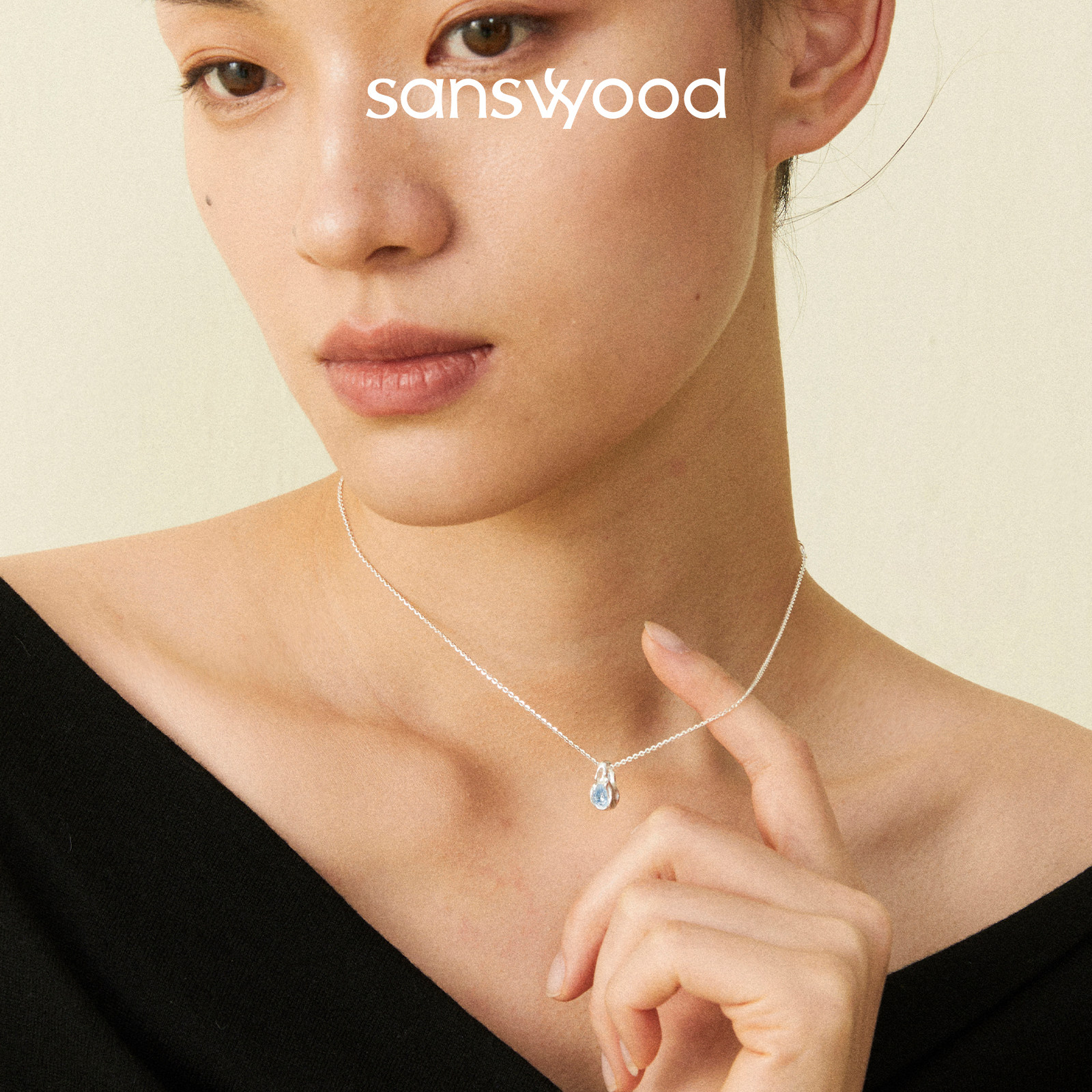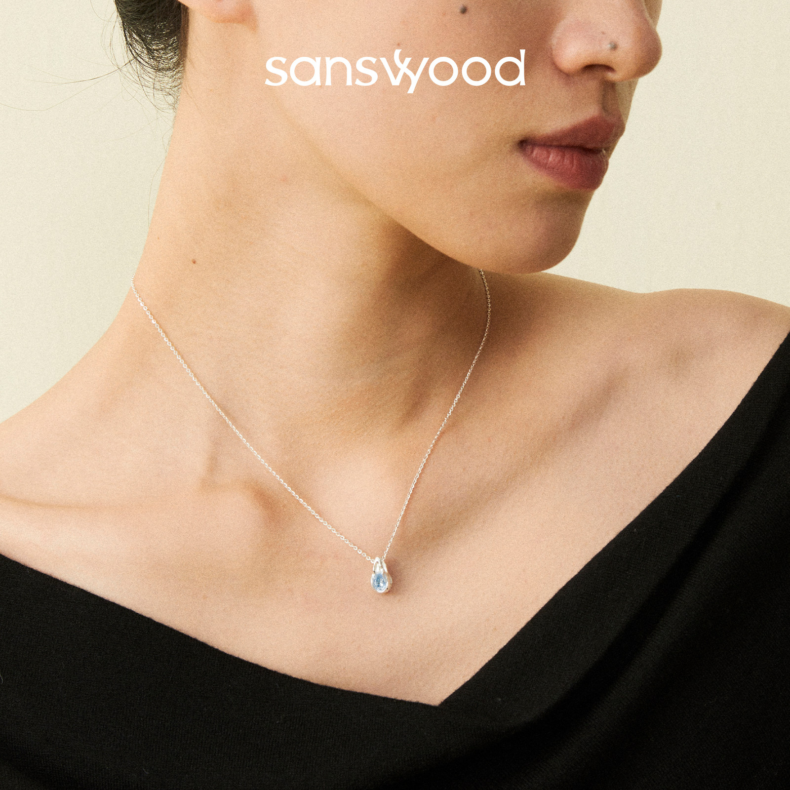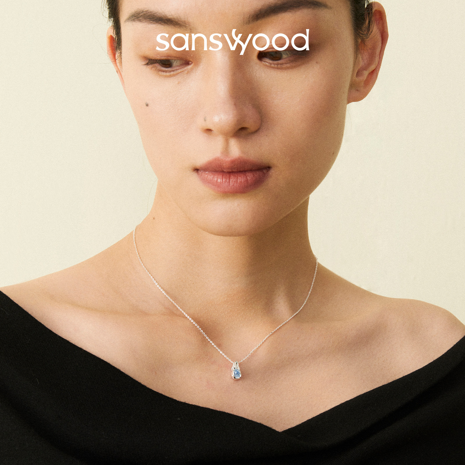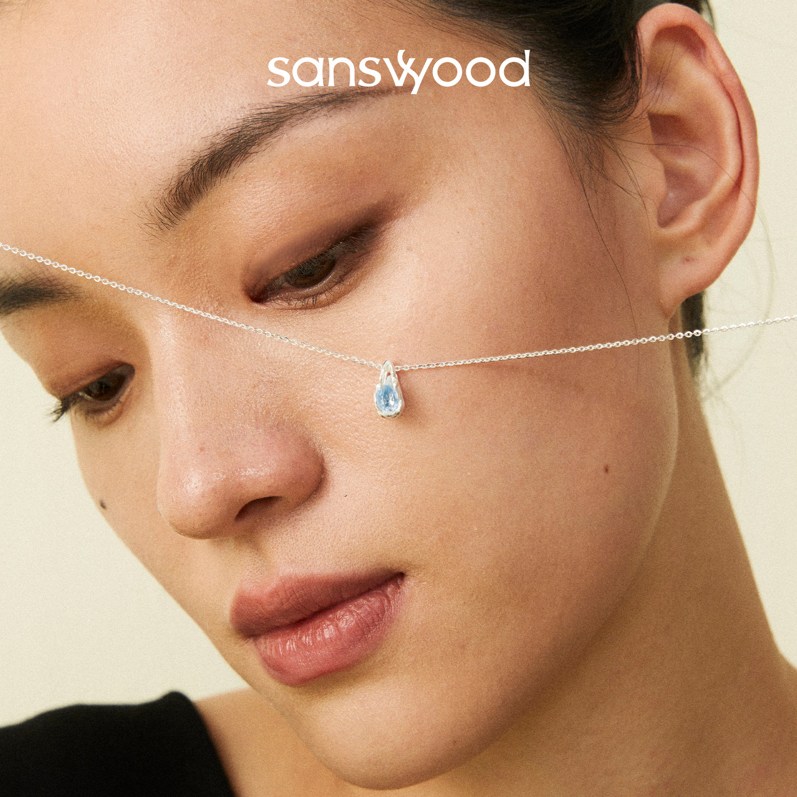 sanswood森吾《爱神落泪》蓝色莫桑钻项链简约通勤气质锁骨链女生