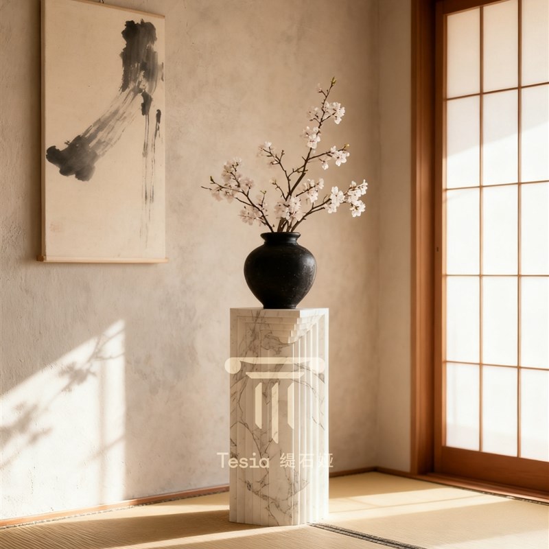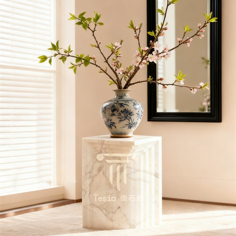 诧寂风天然白色大理奢石几何体落地雕塑底座摆件墩墩展示台立柱子