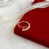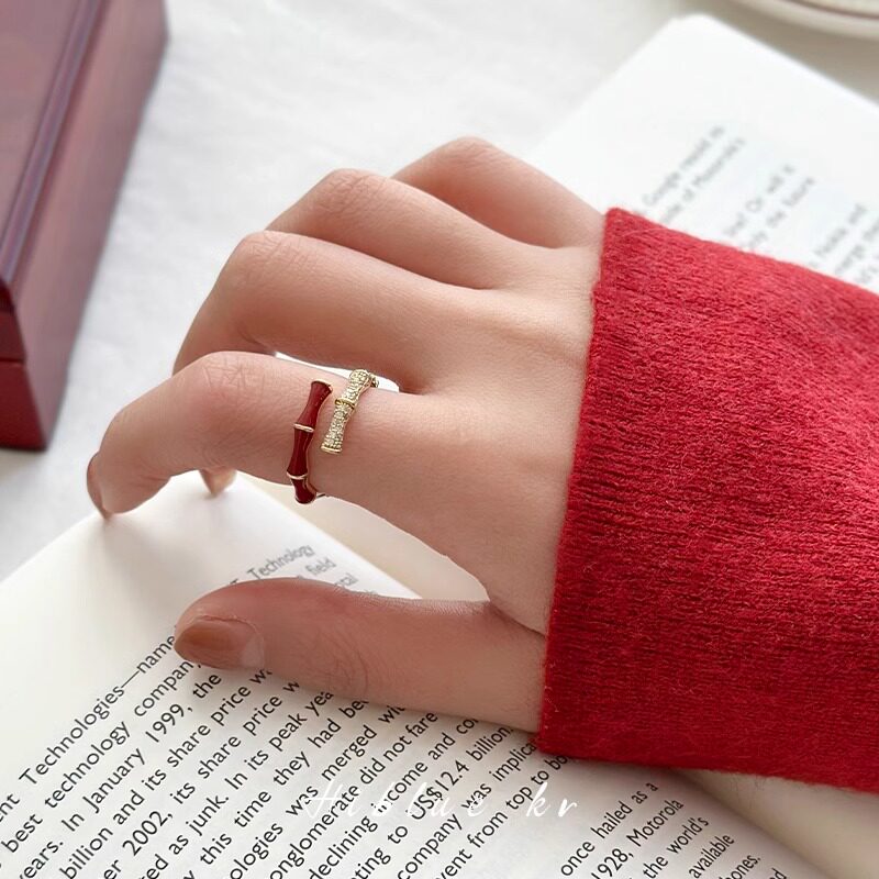 红色镶钻竹节戒指女小众设计轻奢高级感可调节食指开口戒中古饰品
