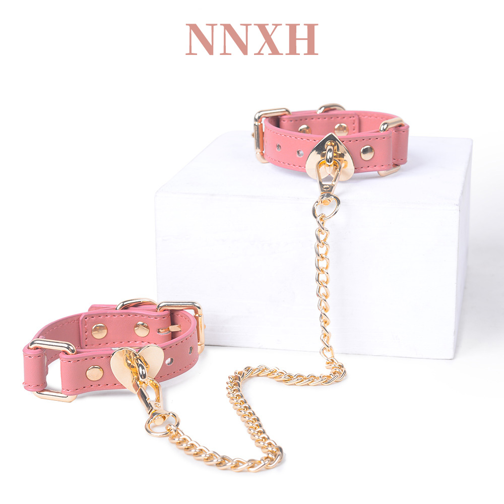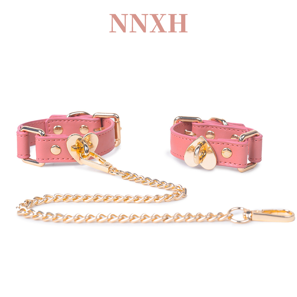 NNXH小道具皮革手铐脚铐粉色女束缚情侣拍照