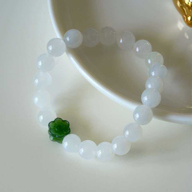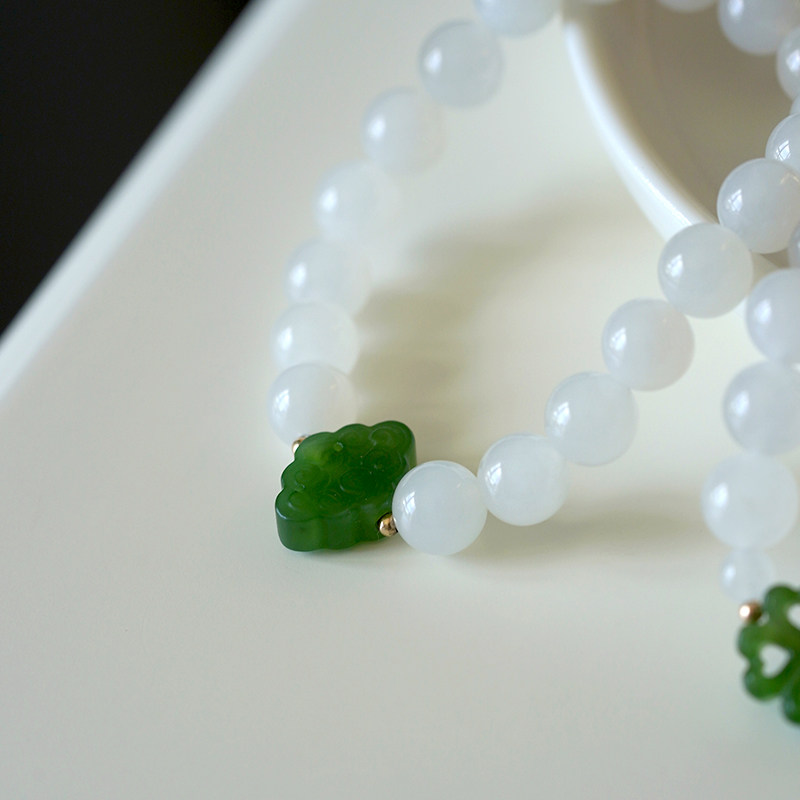 良器艺术|和田白玉珠串8mm白玉手串羊脂玉手串碧玉云纹手链