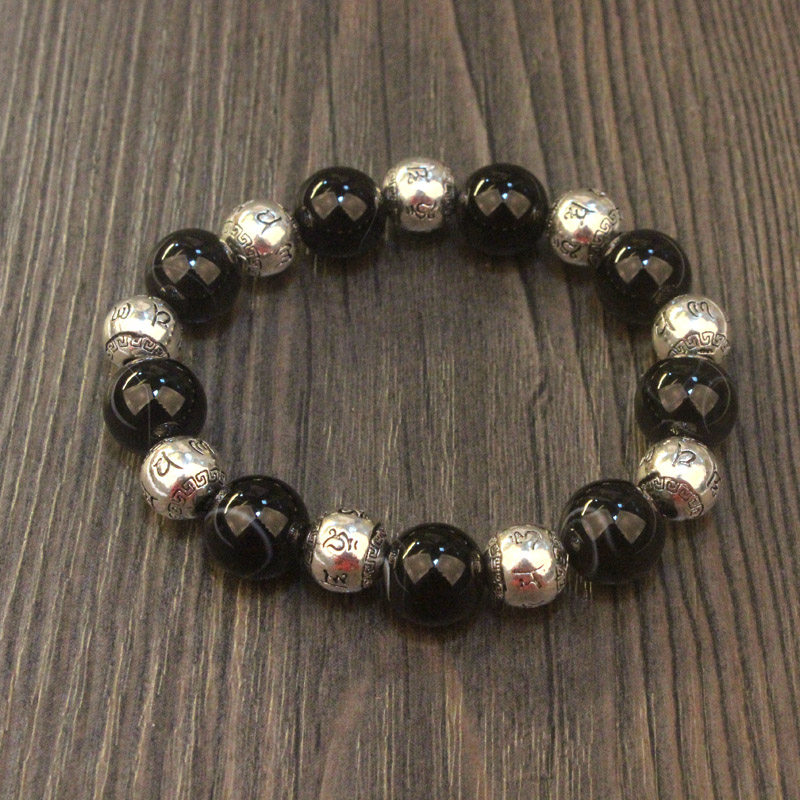 天然红竹石影子石手链 紫冰银结印符六字真言