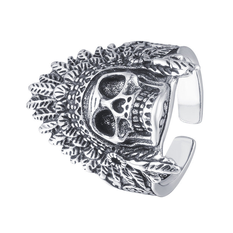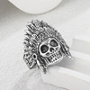 新款欧美朋克个性骷髅头戒指复古时尚印第安人头像摇滚泰银指环