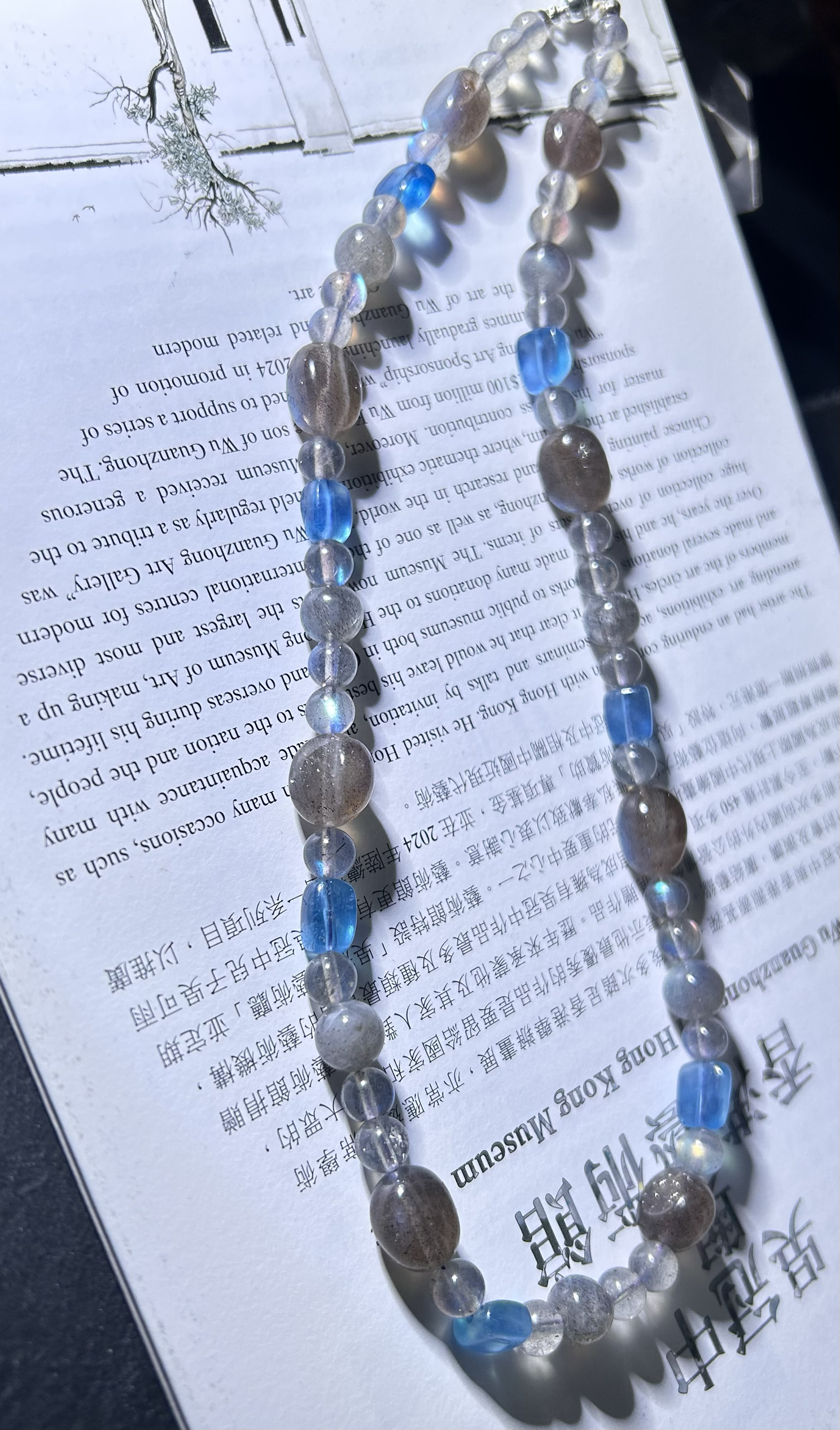 福利 收藏级天然拉长石灰月光魔鬼蓝海蓝宝项链锁骨链