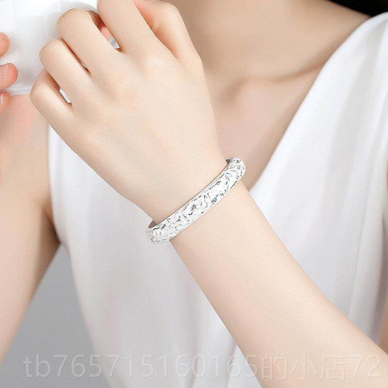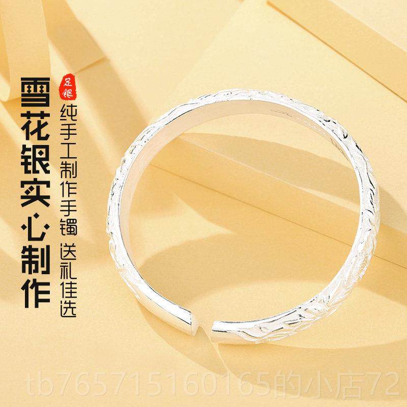 高档苏园林银花楼手工999雪花银手牡花雕实镯心开丹口银饰送妈妈