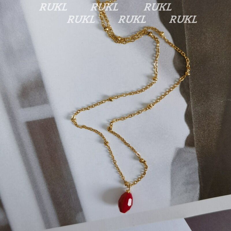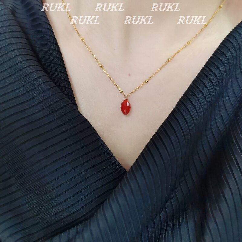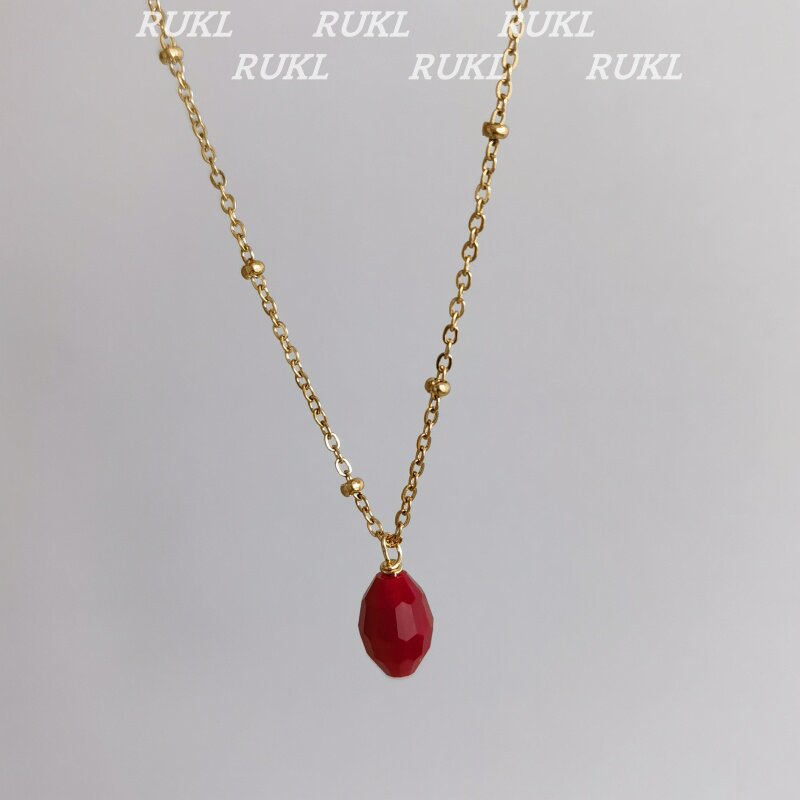 RUKL能量绯红樱凝水滴水晶项链女轻奢小众设计锁骨链新款爆款颈链