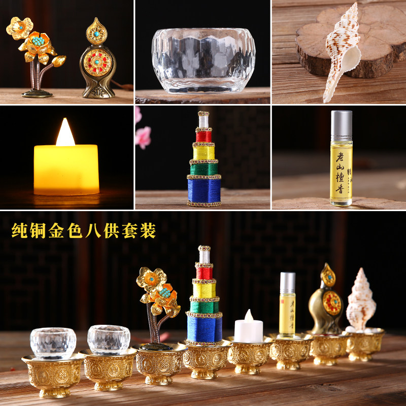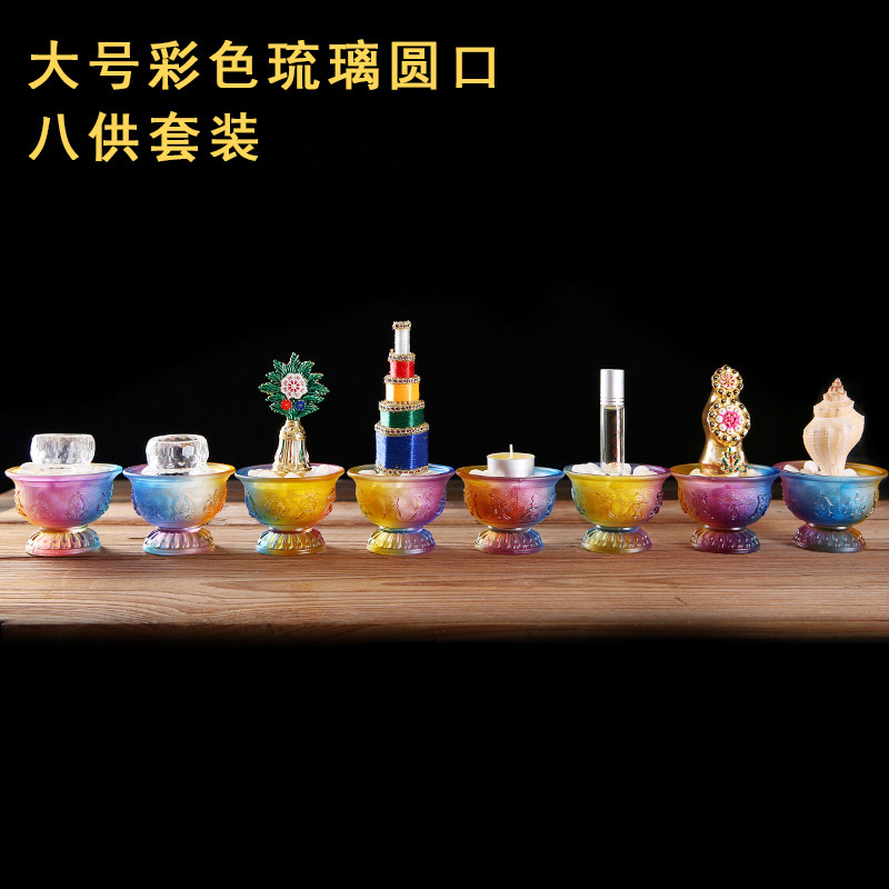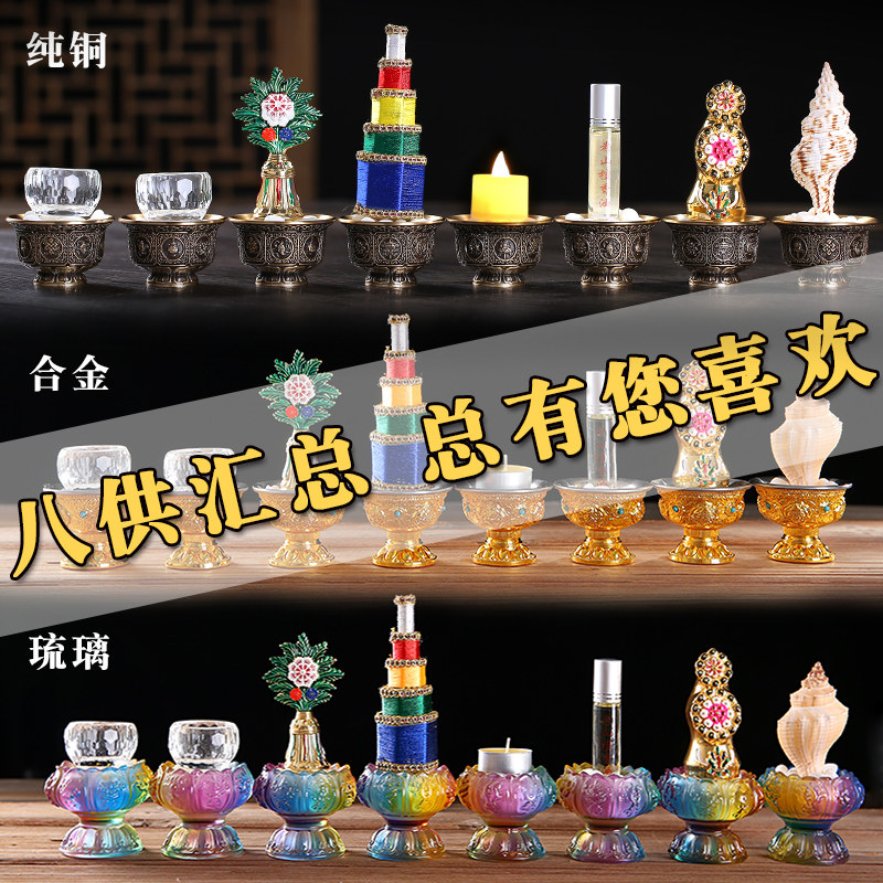 极速琉璃八供养组合套装八吉祥供杯供水黄L铜八吉祥花食子供品家