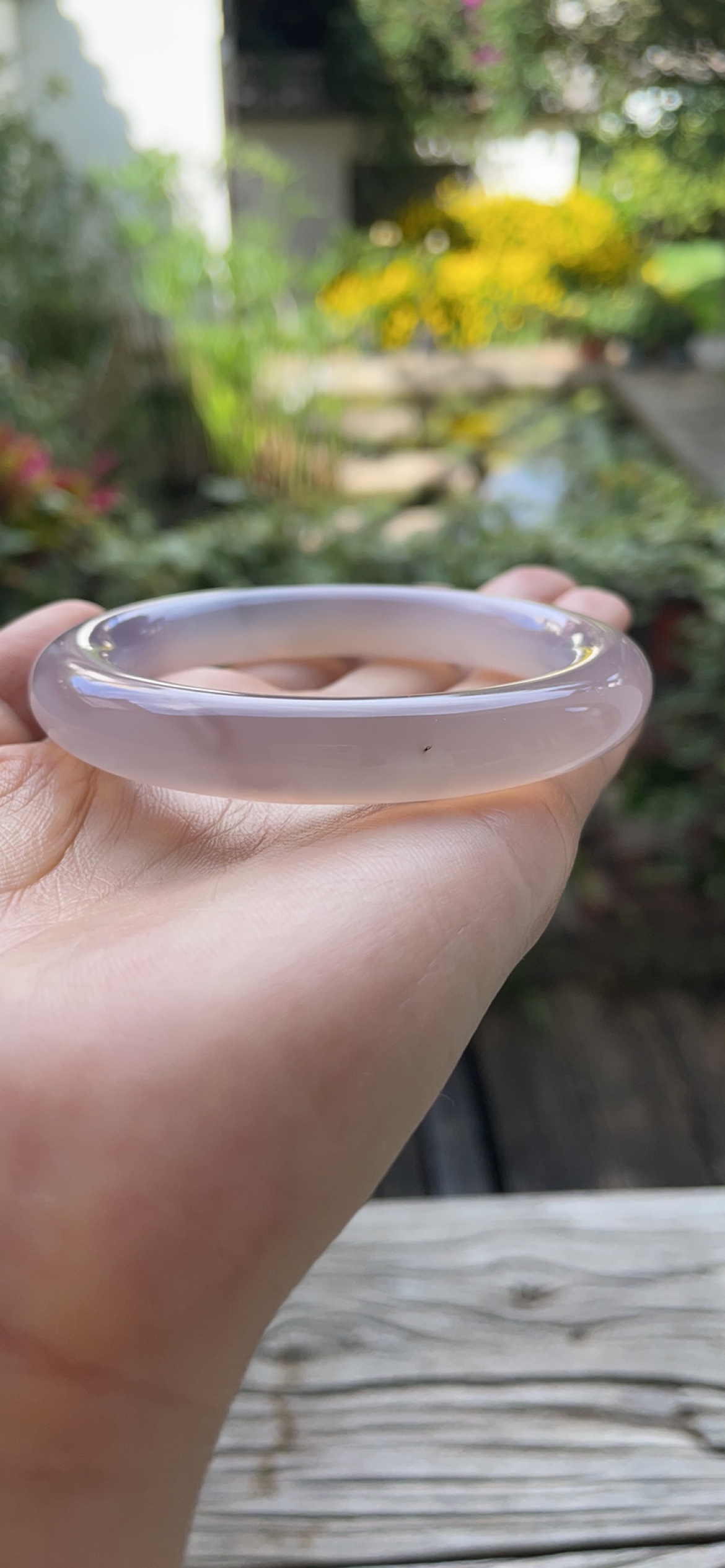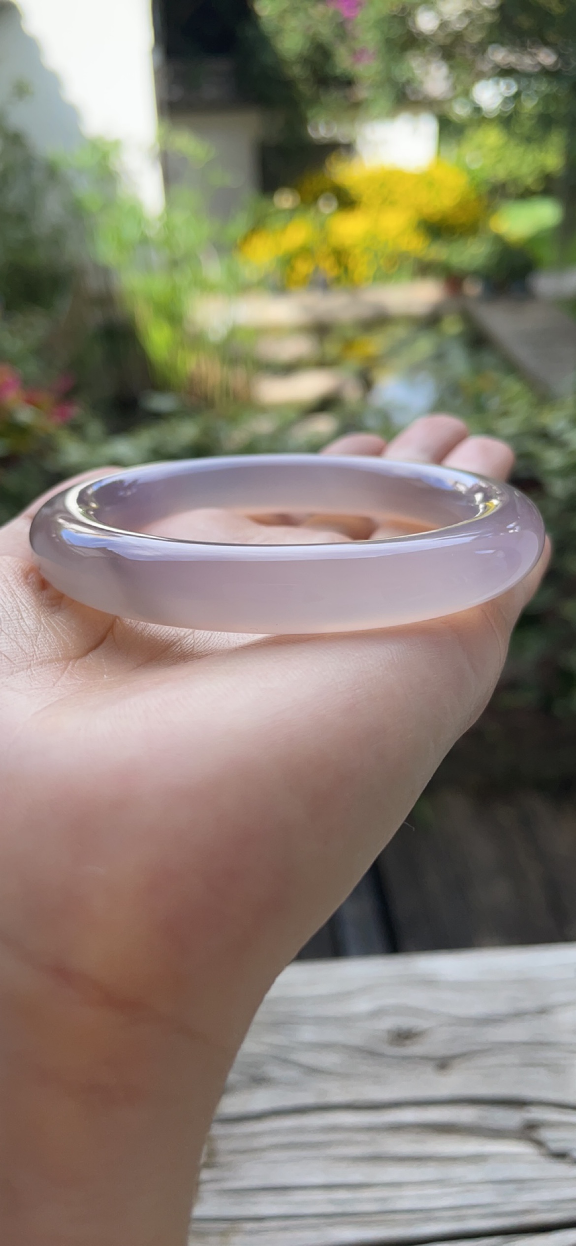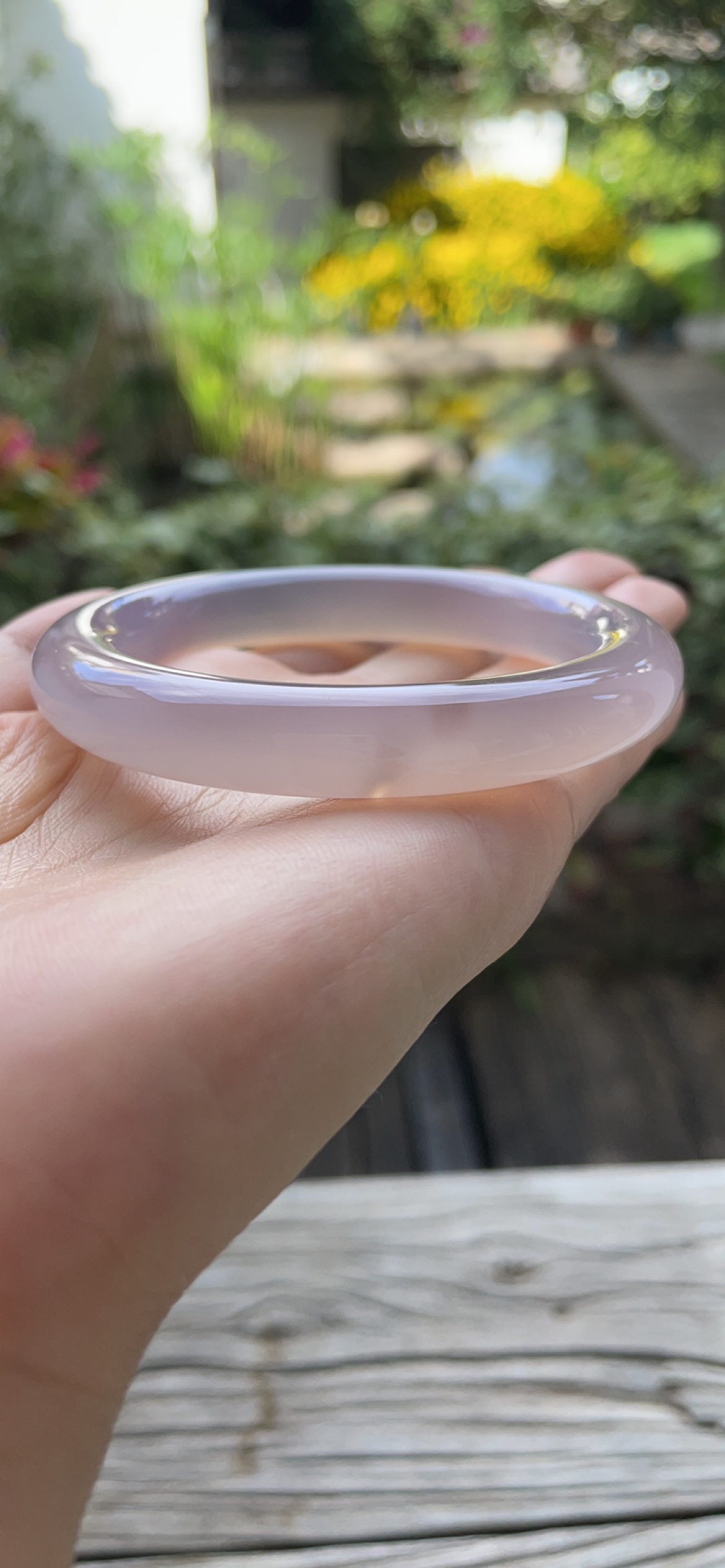 『青禾淑坊』天然灰紫色玛瑙手镯 {中庭日淡芭蕉卷} 古典圆镯54MM