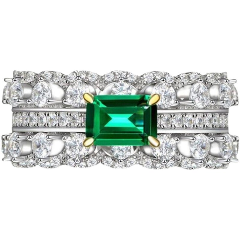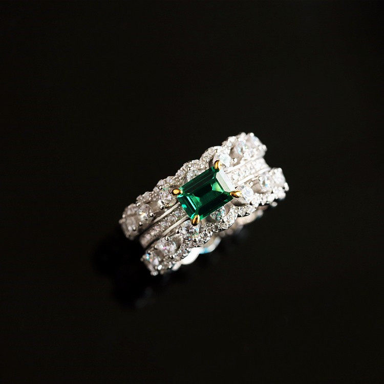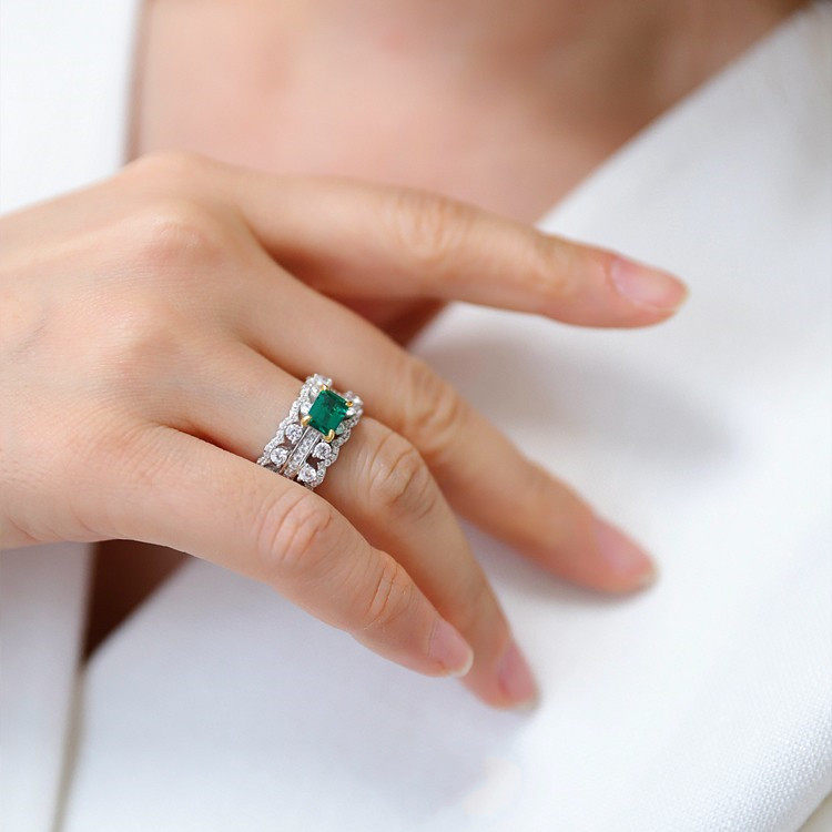 PT950铂金新款美国进口D色莫桑石奢华祖母绿满钻现货高端戒指高级