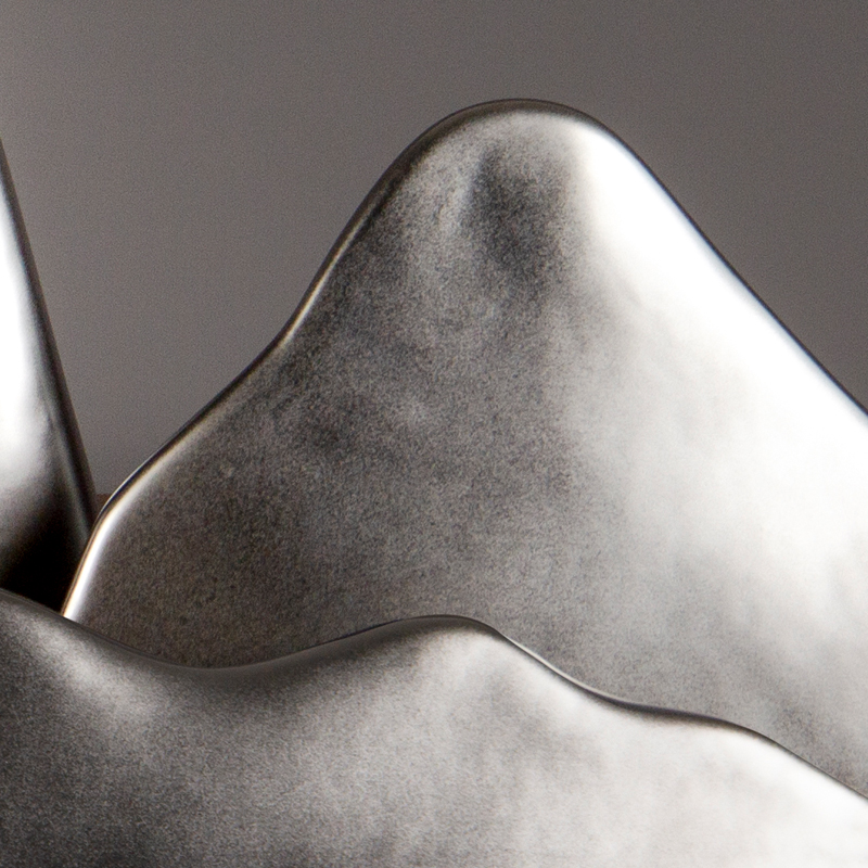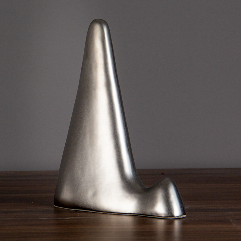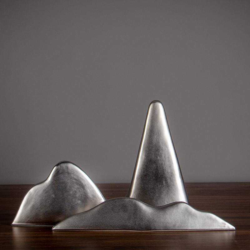 现代简约轻奢家居样板房客厅陶瓷银山摆件软装饰品仿金属假山艺术