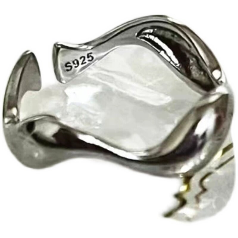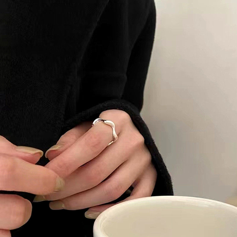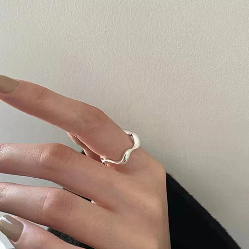 韩版银指环INS极简不规则波浪纹光面S925纯银开口戒指女小众高级